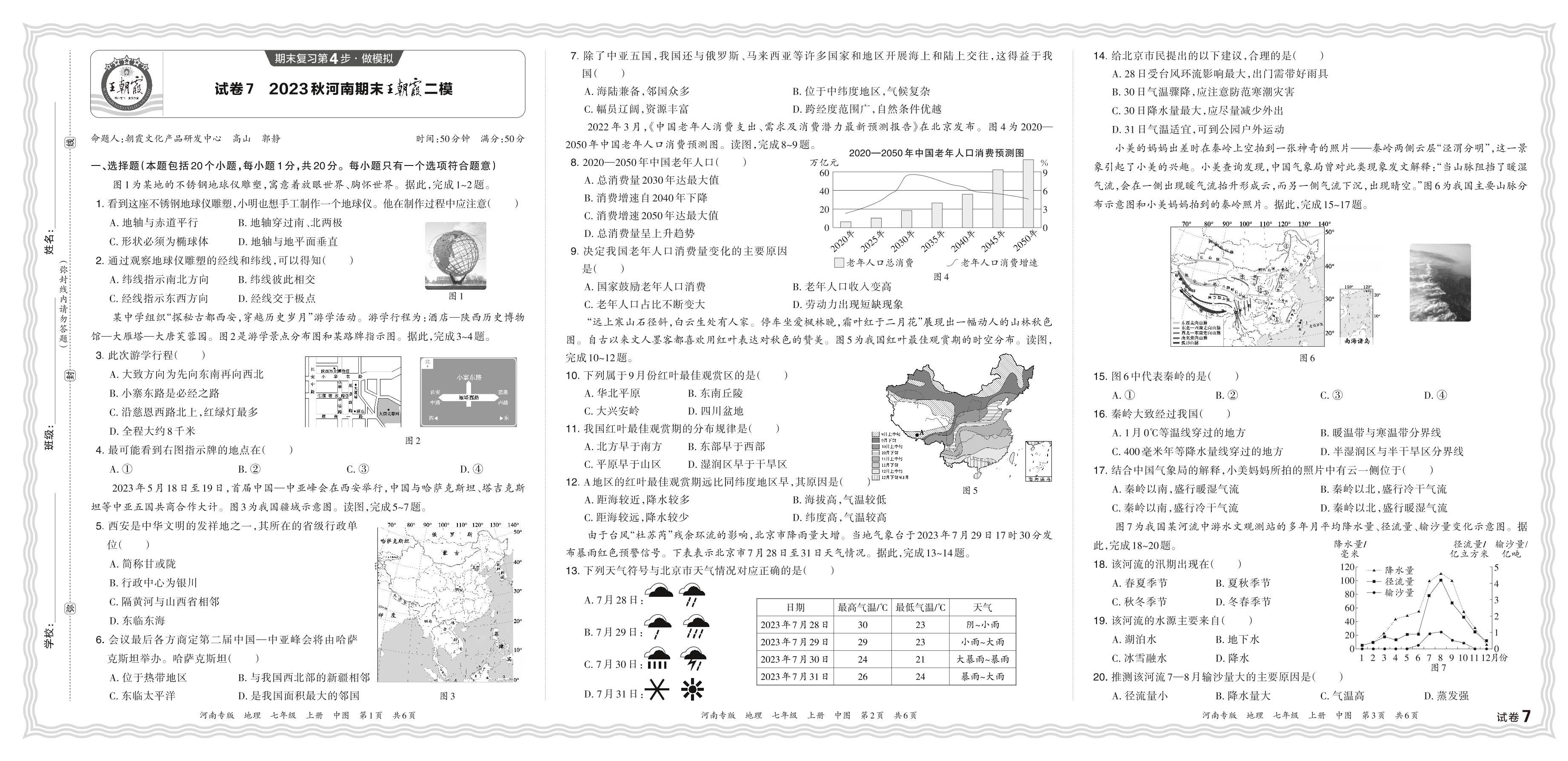 2023秋上册七年级地理中图版 河南期末王朝霞二模