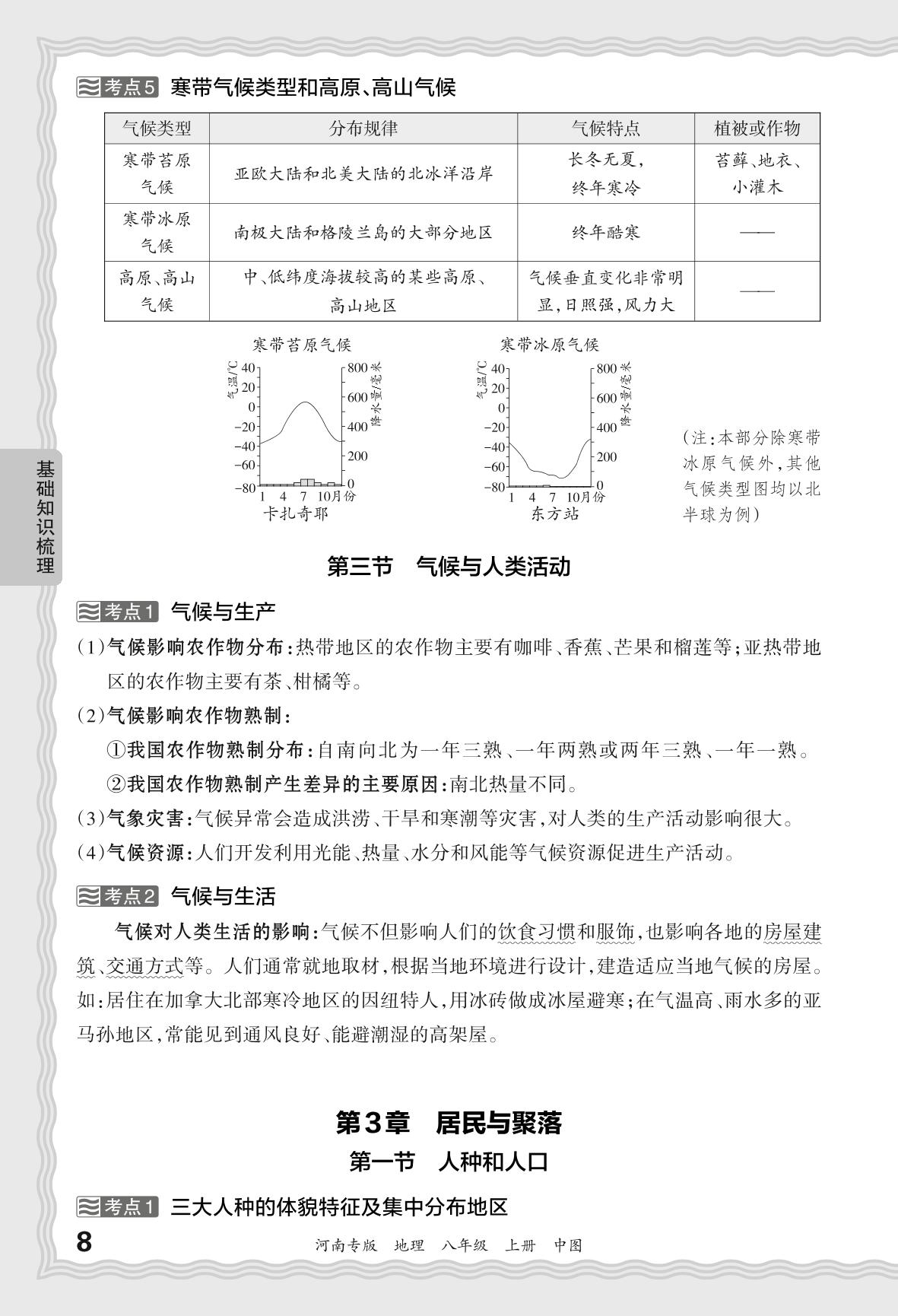 2023秋上册八年级地理中图版 期末过课本·基础知识梳理 第3章 居民与聚落