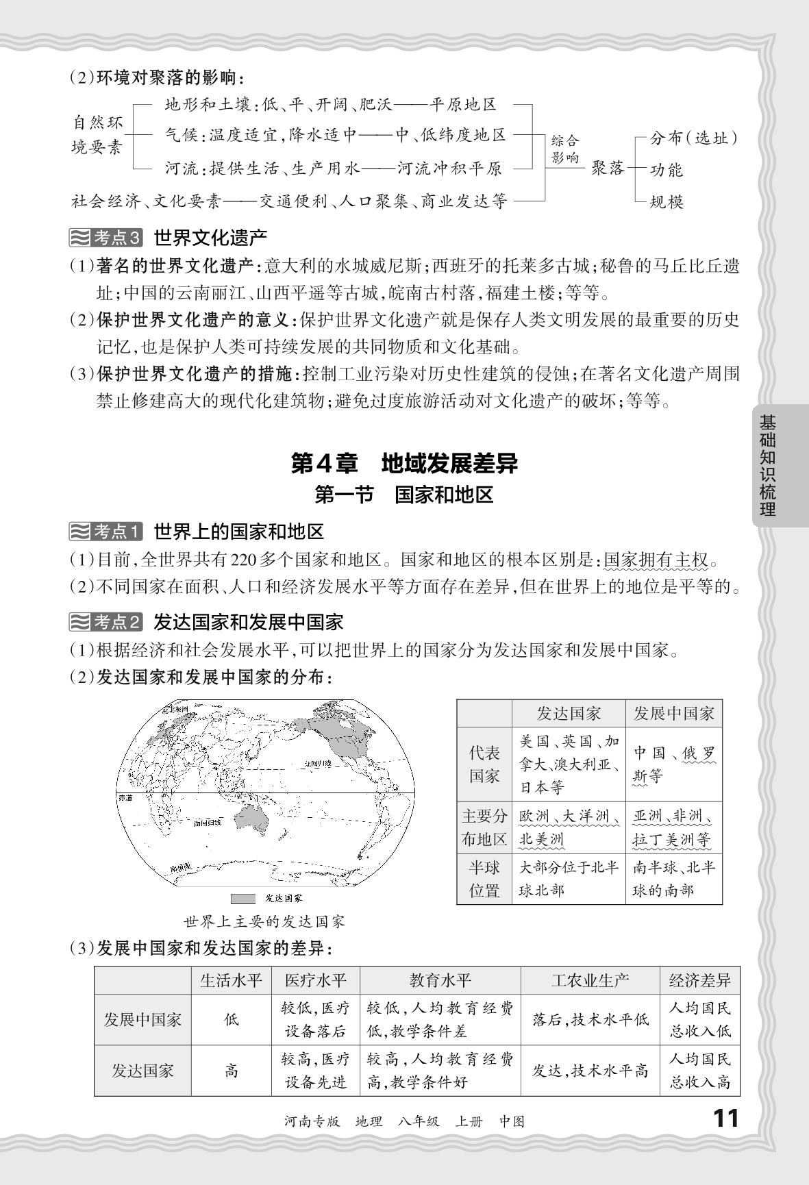 2023秋上册八年级地理中图版 期末过课本·基础知识梳理 第4章 地域发展差异