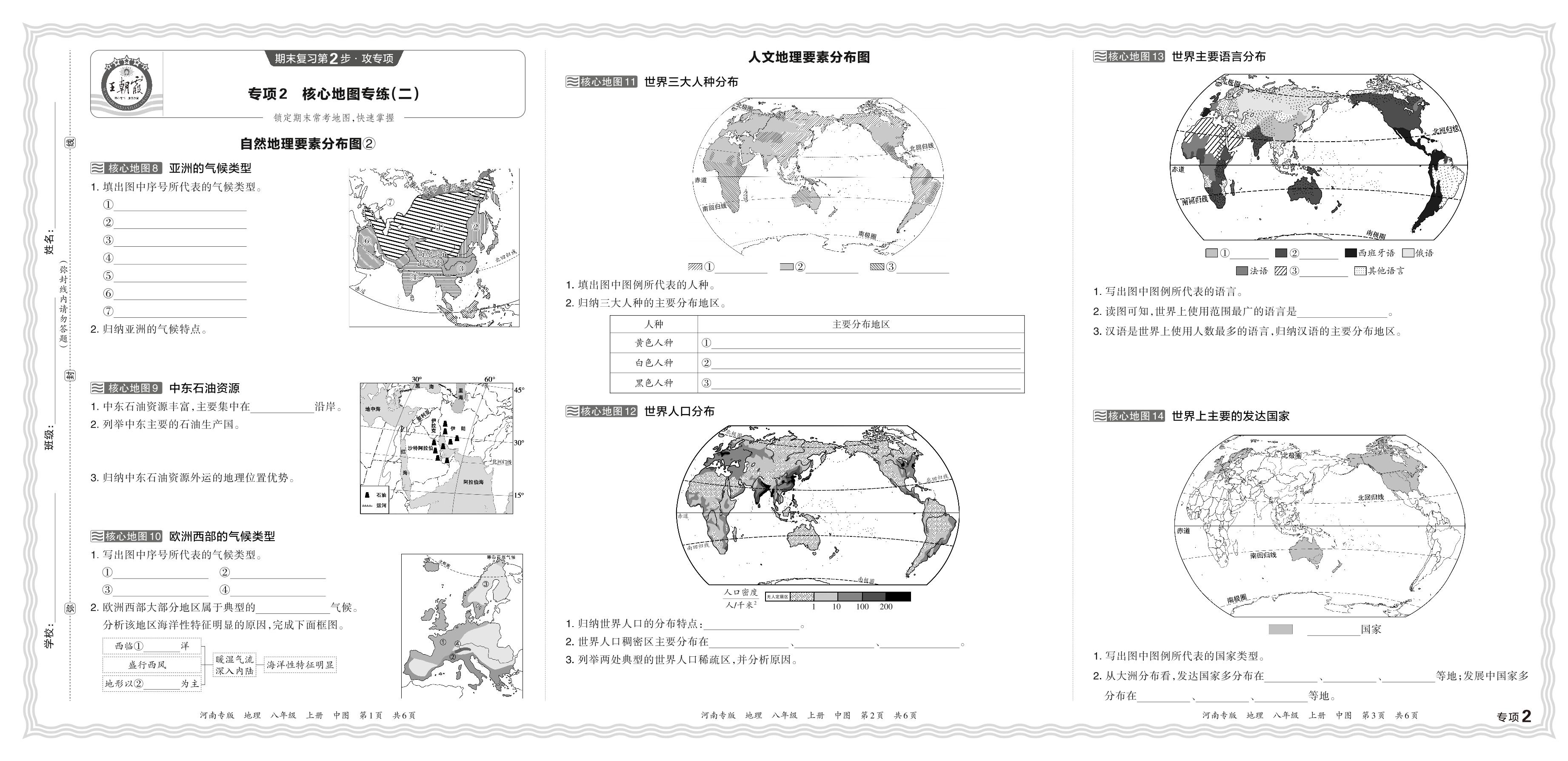 2023秋上册八年级地理中图版 期末专项卷·核心地图专练(二)