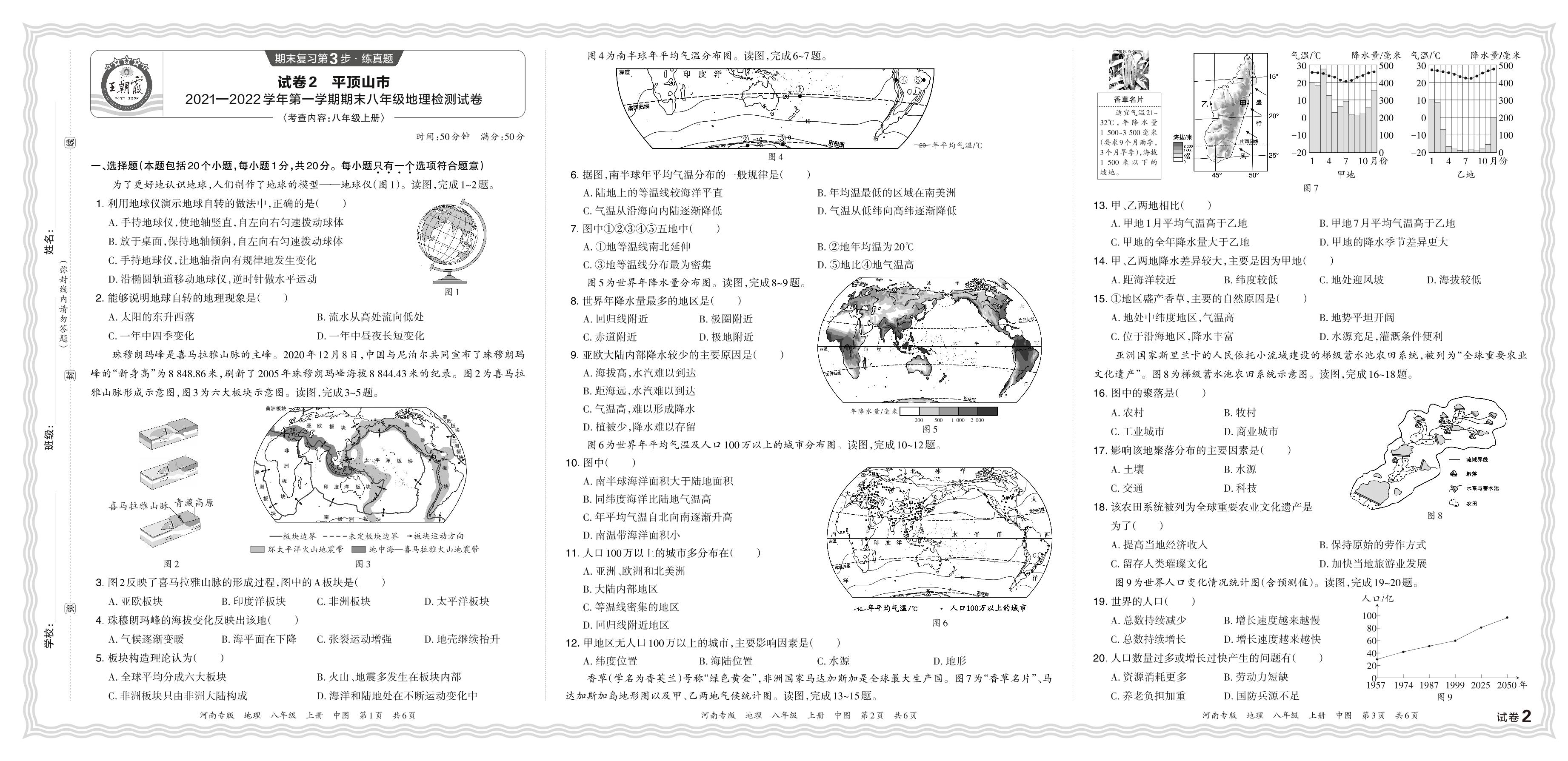 河南省平顶山市2021—2022学年第一学期期末八年级地理检测试卷(中图版)【2】