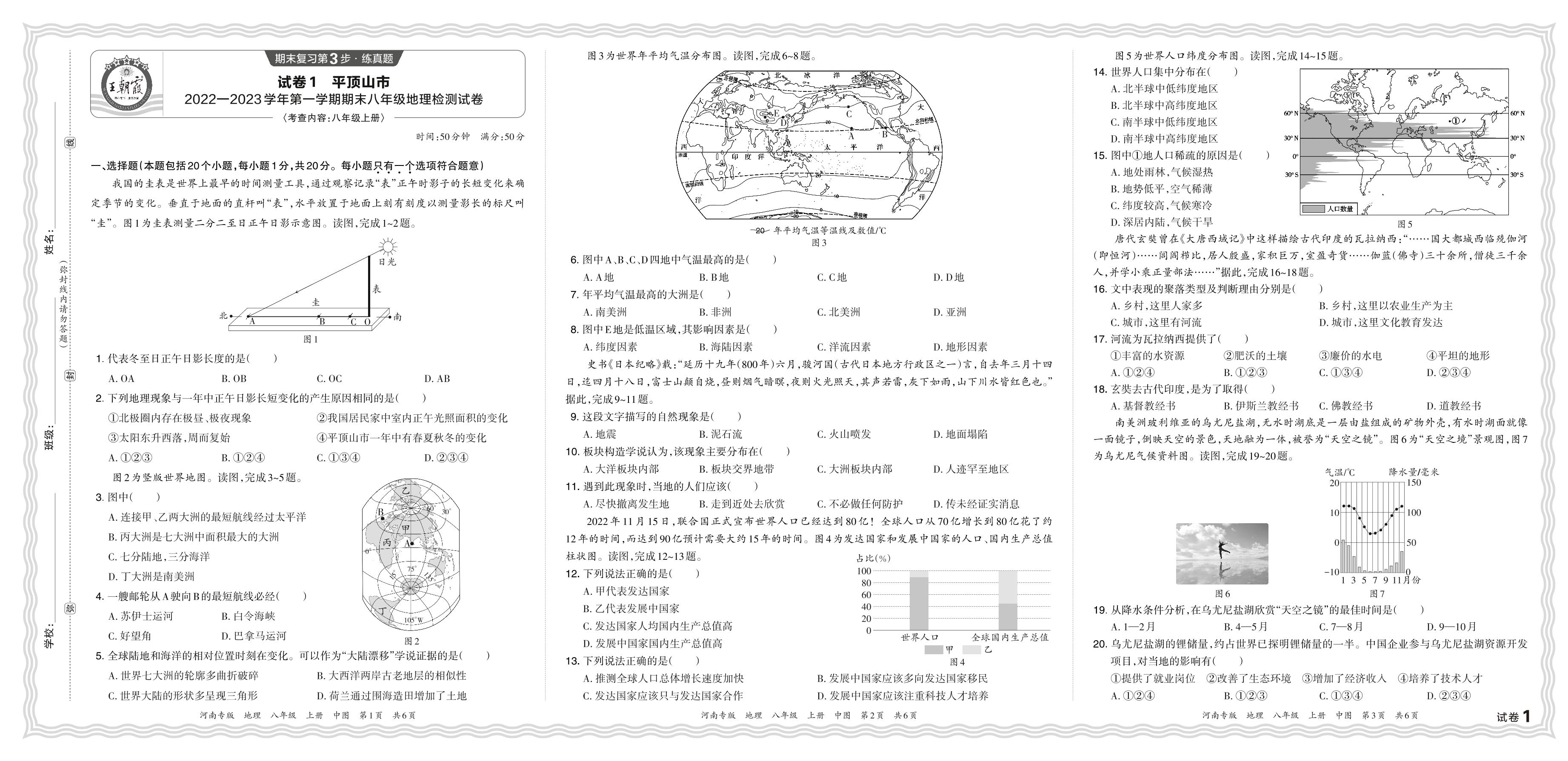 河南省平顶山市2022—2023学年第一学期期末八年级地理检测试卷(中图版)【1】