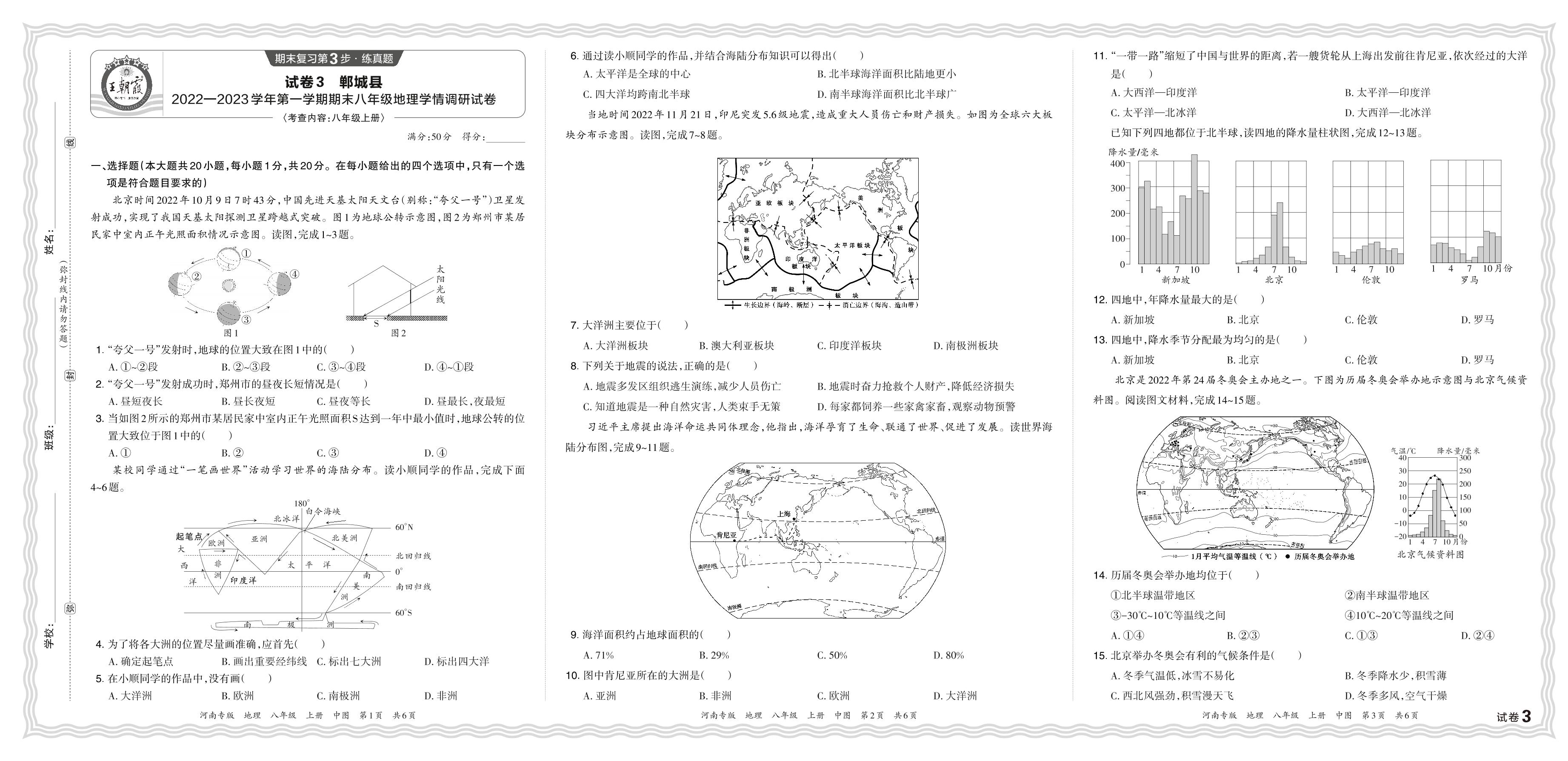 河南省周口市郸城县2022—2023学年第一学期期末八年级地理学情调研试卷(中图版)【3】