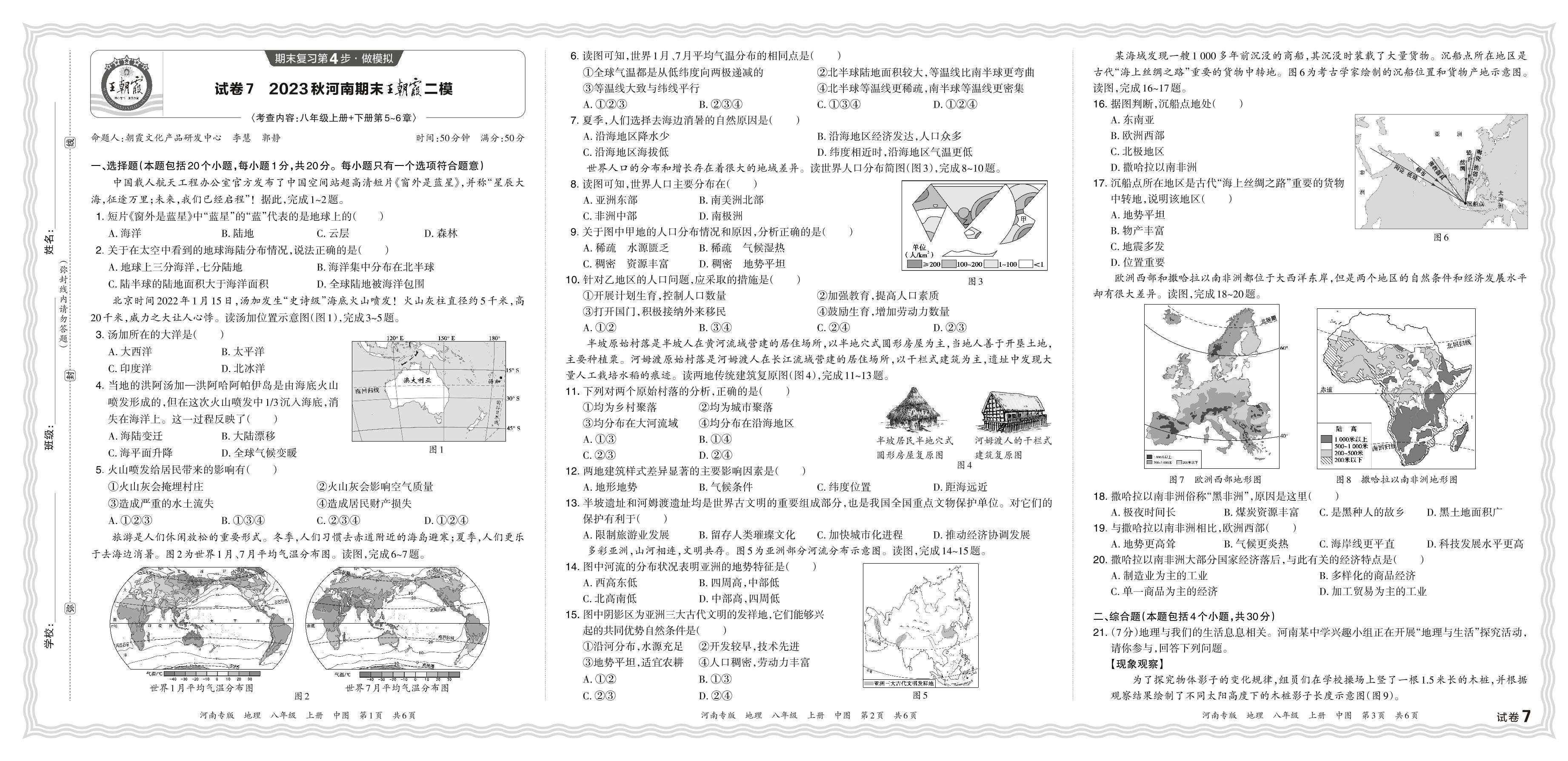 2023秋上册八年级地理中图版 河南期末王朝霞二模