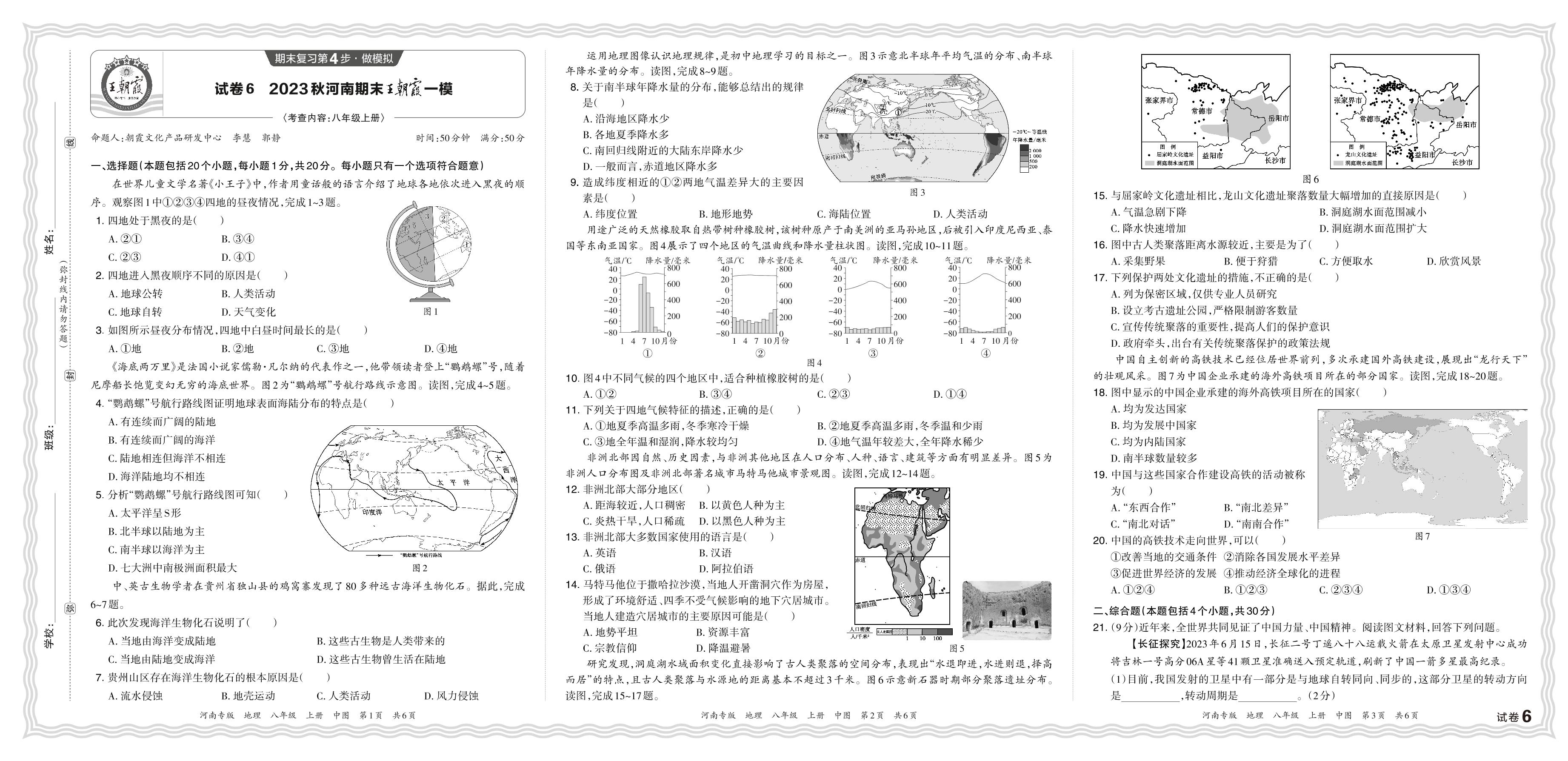 2023秋上册八年级地理中图版 河南期末王朝霞一模