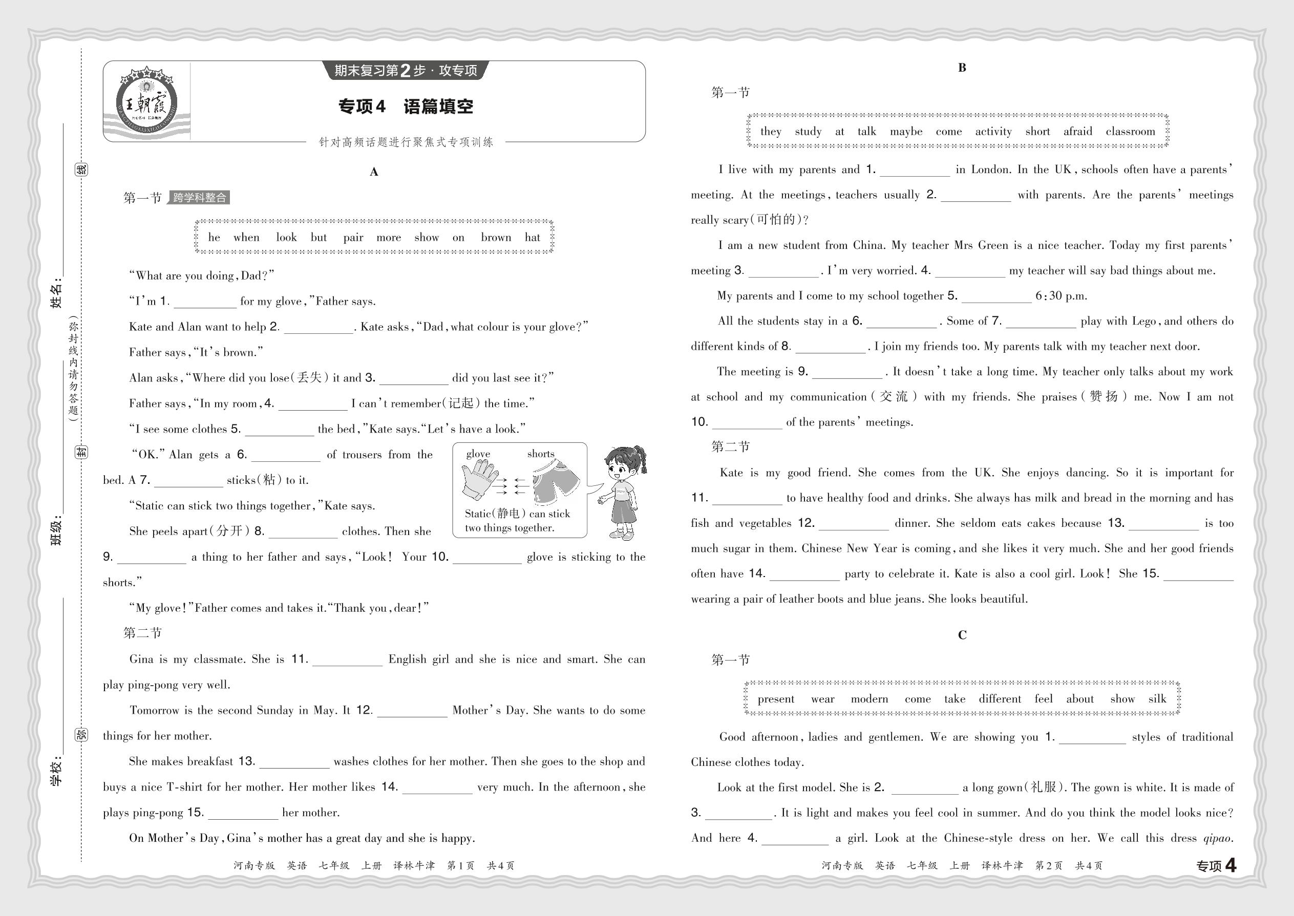 2023秋上册七年级英语译林牛津版 期末专项卷·语篇填空【4】