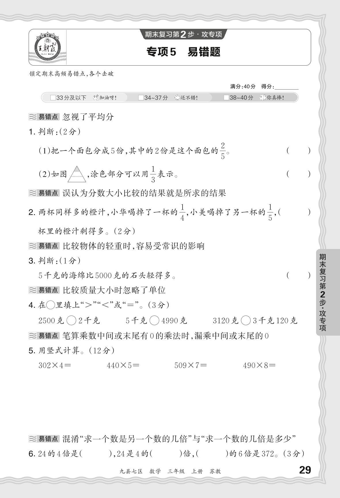2023秋上册三年级数学苏教版 期末专项卷·易错题_R231127151211779【5】