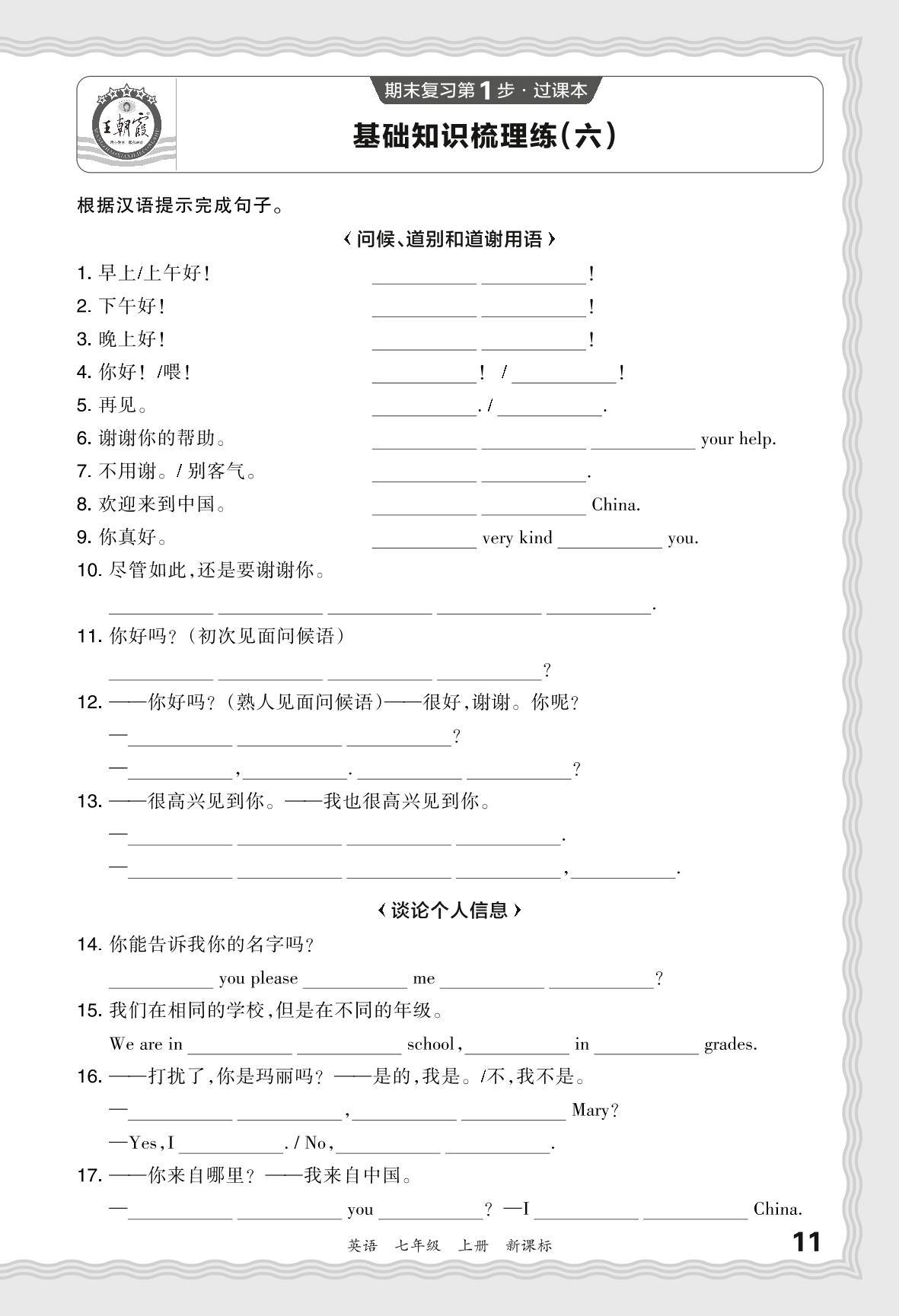 2023秋上册七年级英语新课标版 期末过课本·基础知识梳理练(六)