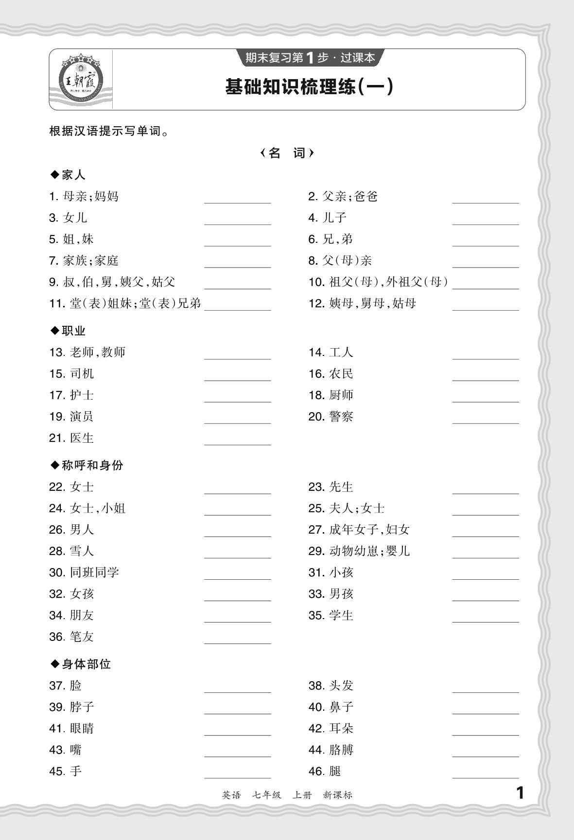 2023秋上册七年级英语新课标版 期末过课本·基础知识梳理练(一)