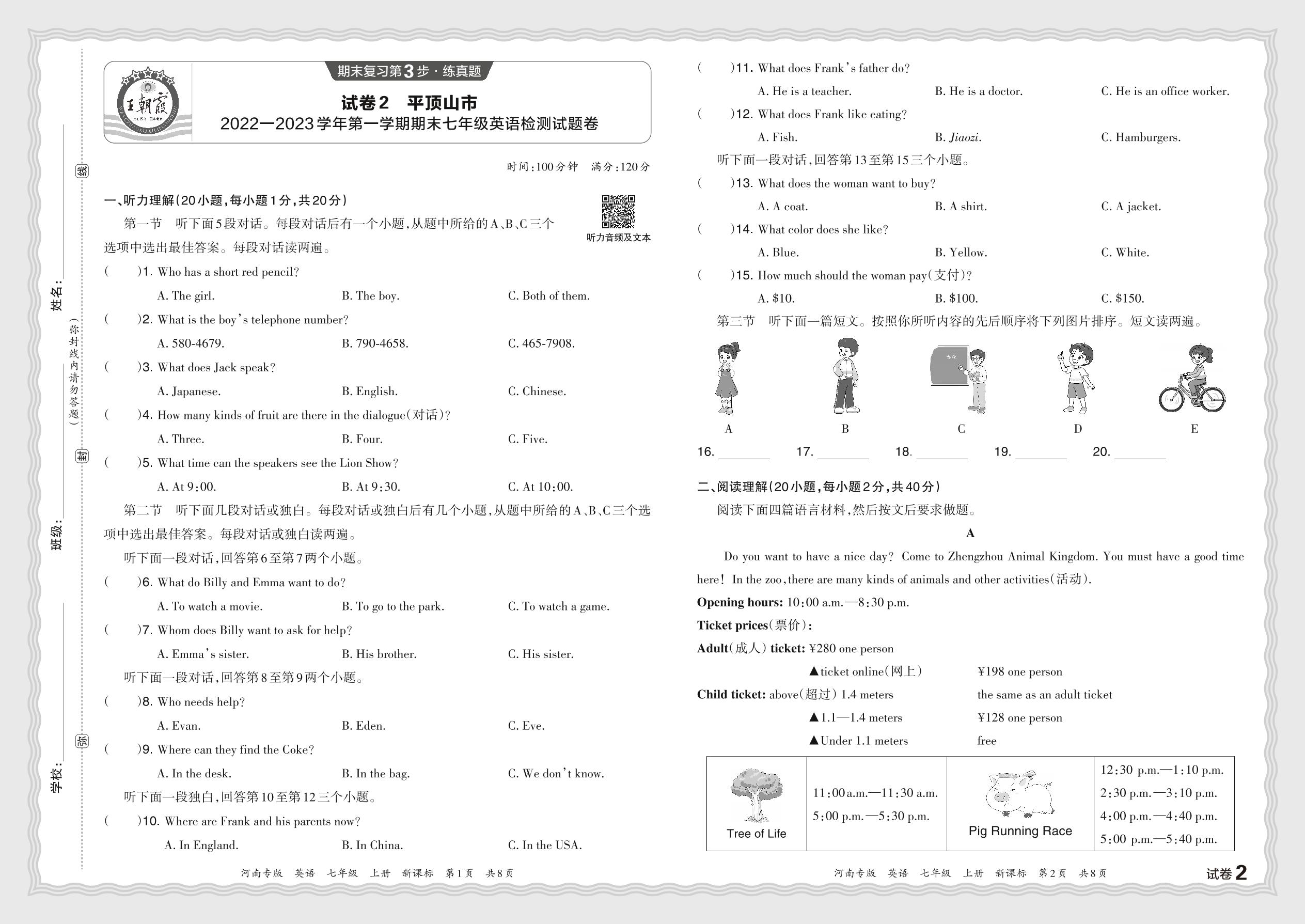 河南省平顶山市2022—2023学年第一学期期末七年级英语检测试题卷(新课标版)【2】