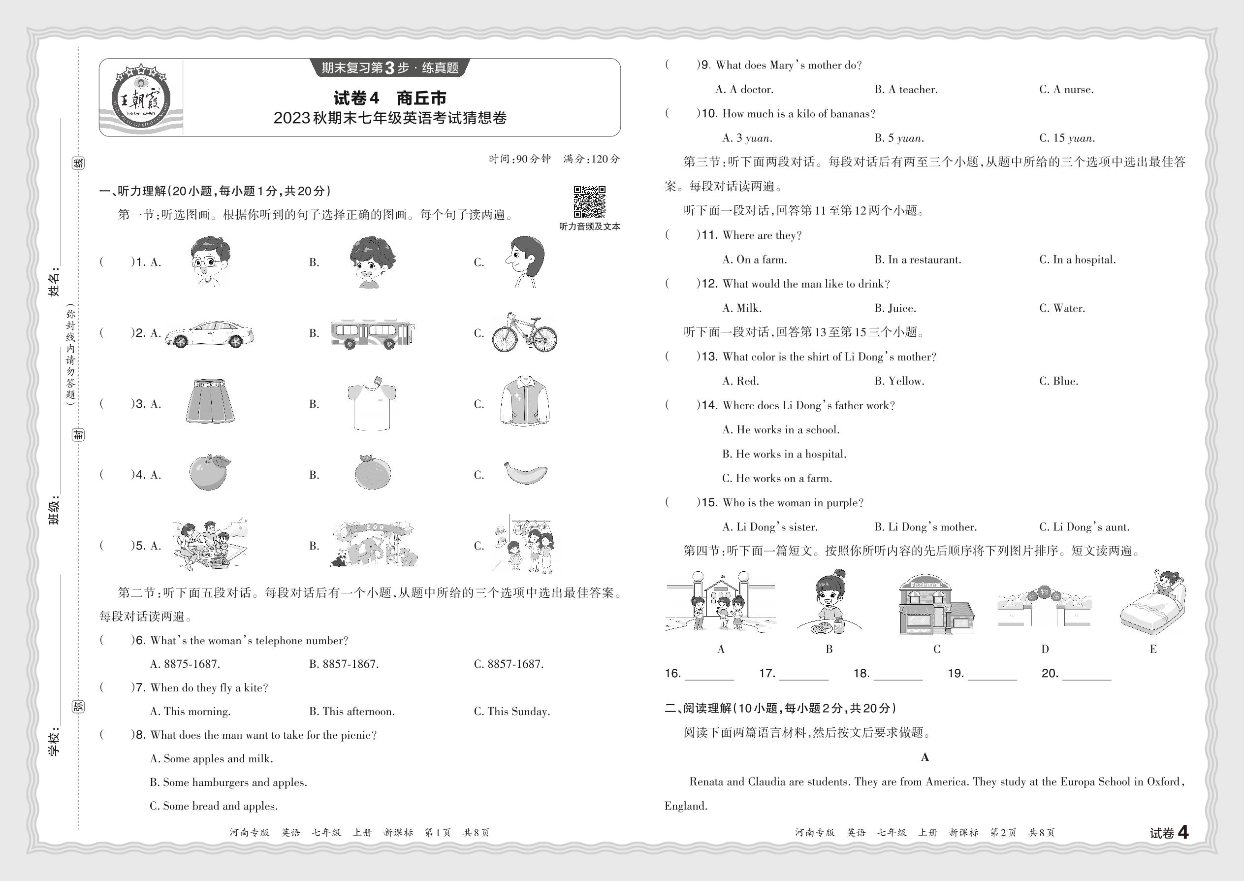 河南省商丘市2023秋期末七年级英语考试猜想卷(新课标版)【4】