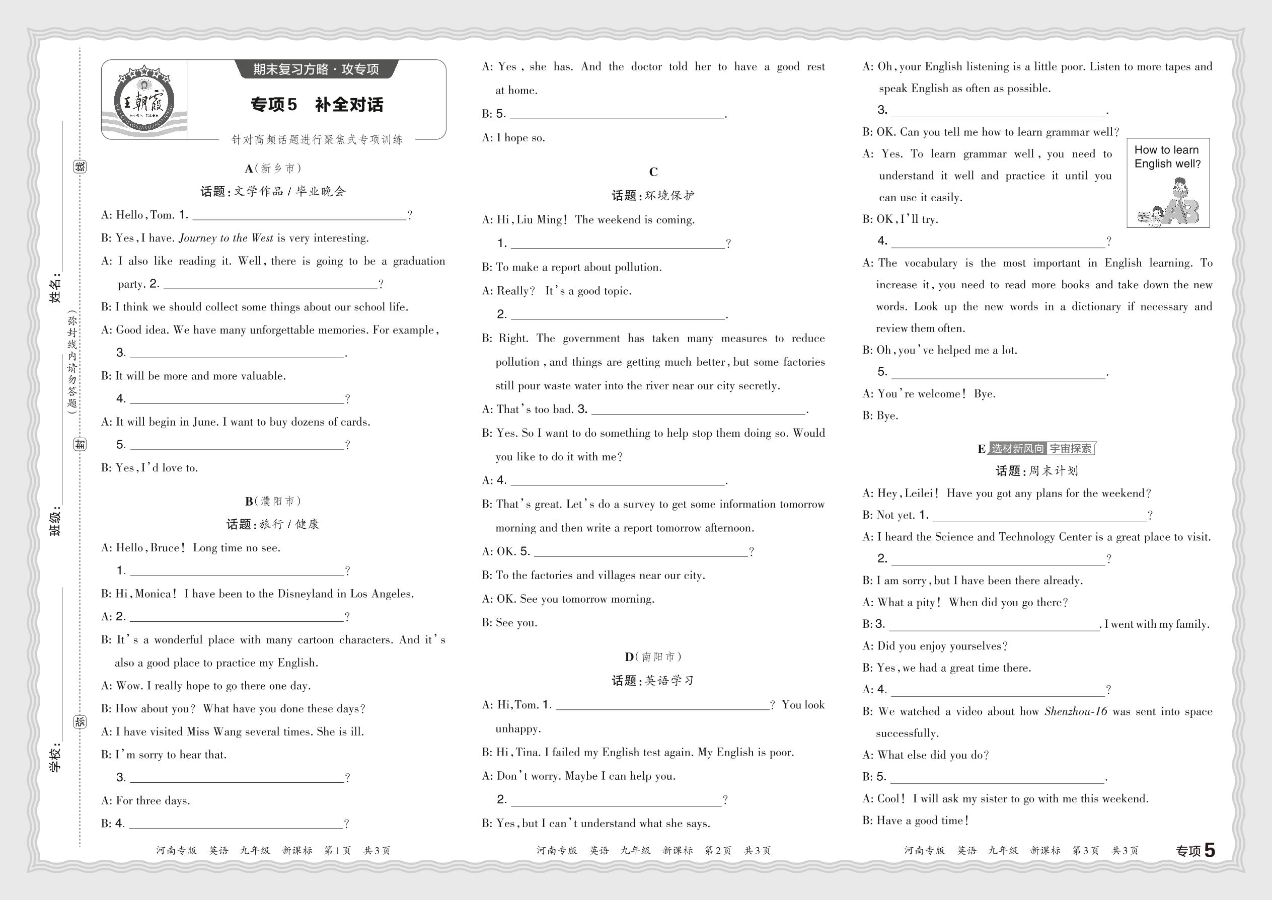 2023秋上册九年级英语新课标版 期末专项卷·补全对话【5】
