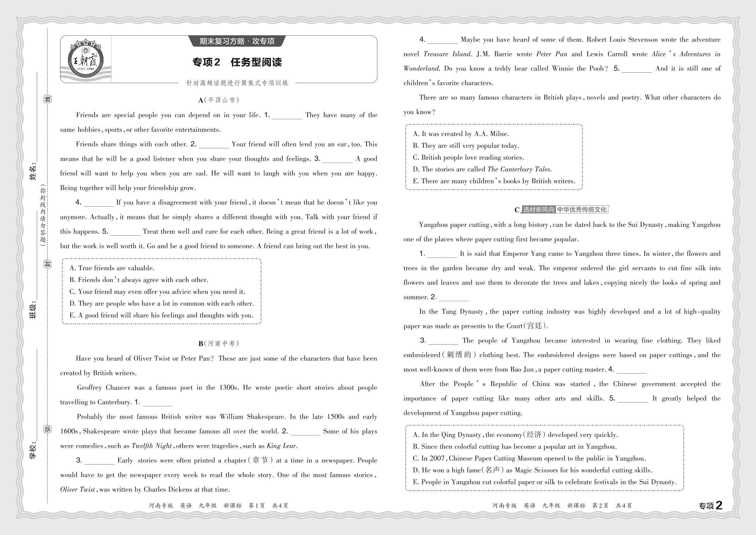 2023秋上册九年级英语新课标版 期末专项卷·任务型阅读【2】