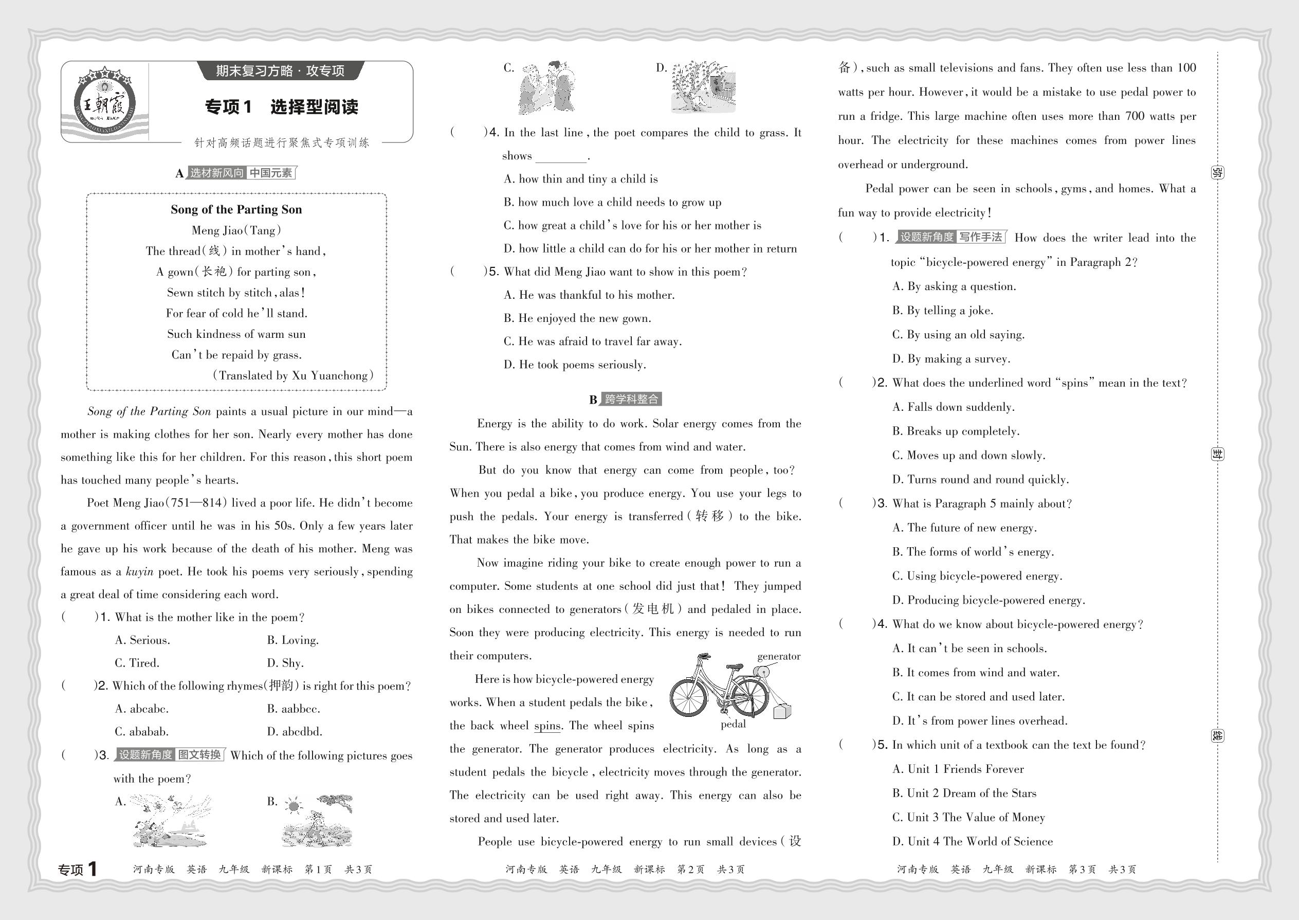 2023秋上册九年级英语新课标版 期末专项卷·选择型阅读【1】