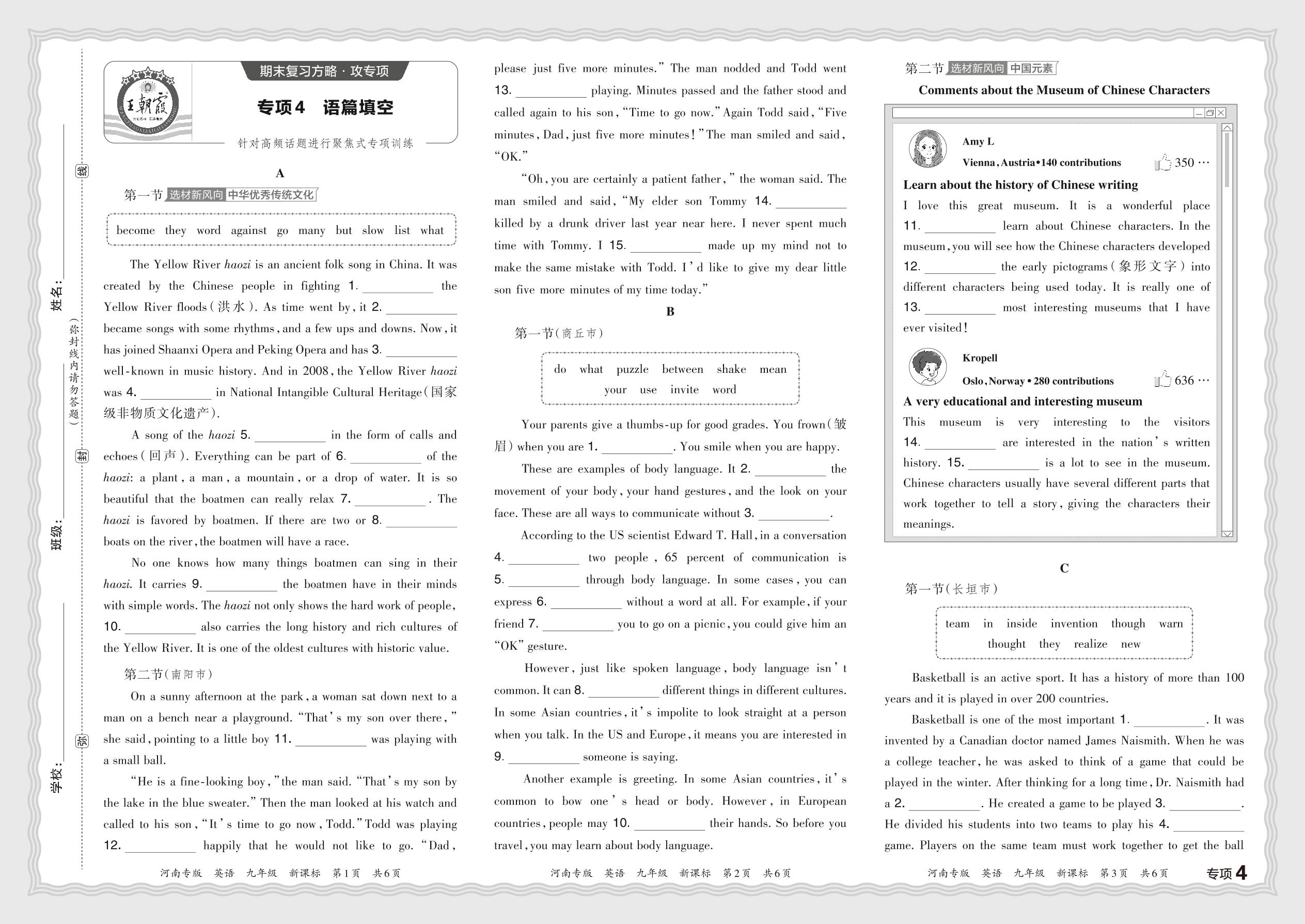 2023秋上册九年级英语新课标版 期末专项卷·语篇填空【4】
