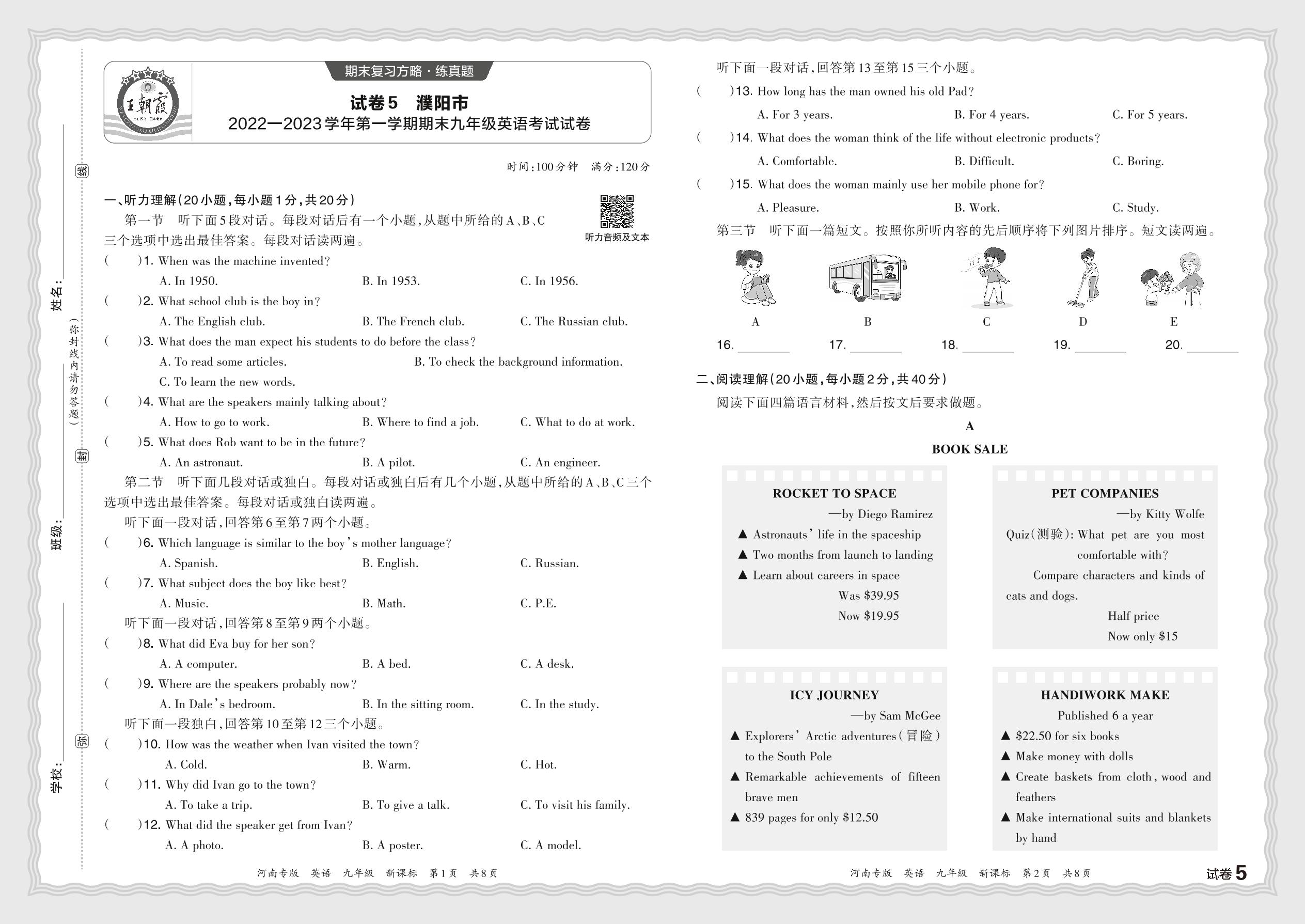 河南省濮阳市2022—2023学年第一学期期未九年级英语考试试卷(新课标版)【5】