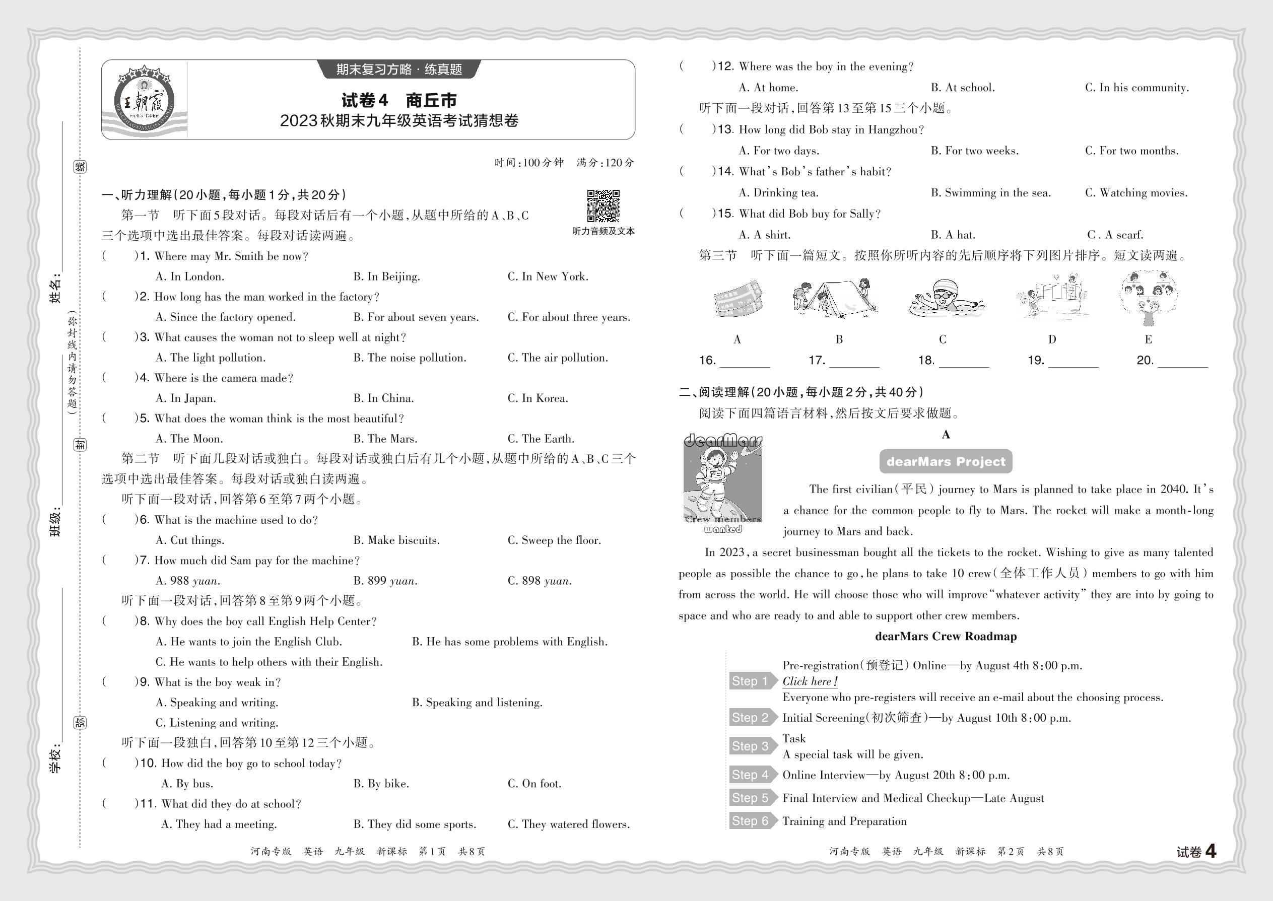 河南省商丘市2023秋期末九年级英语考试清想卷(新课标版)【4】