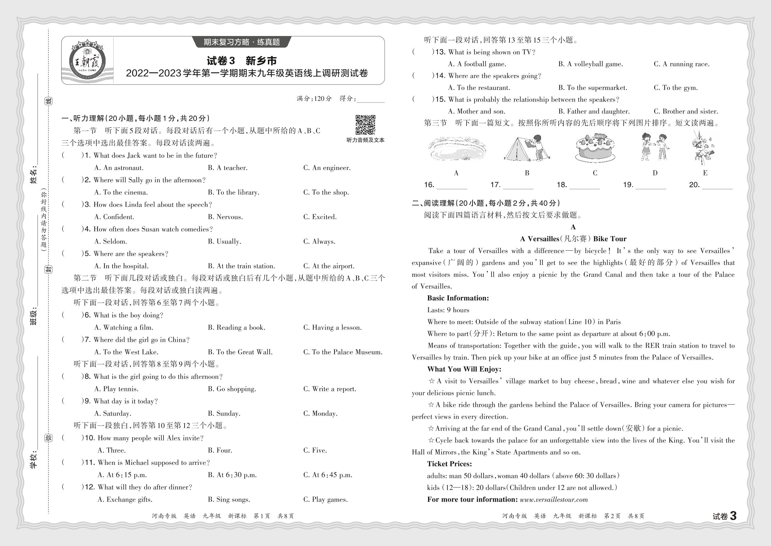 河南省新乡市2022—2023学年第一学期期末九年级英语线上调研测试卷(新课标版)【3】