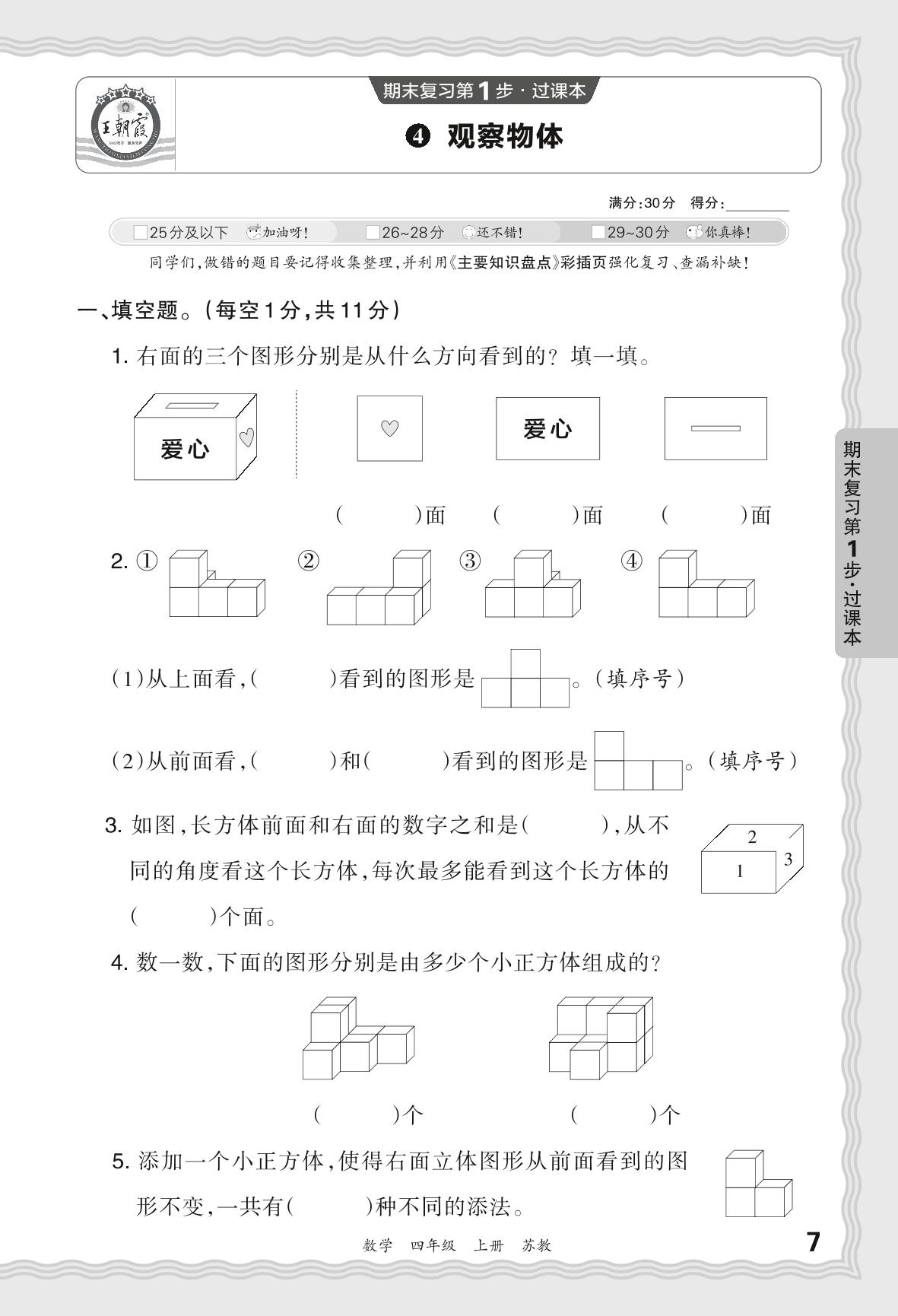 2023秋上册四年级数学苏教版 期末过课本QMB版·观察物体【4】