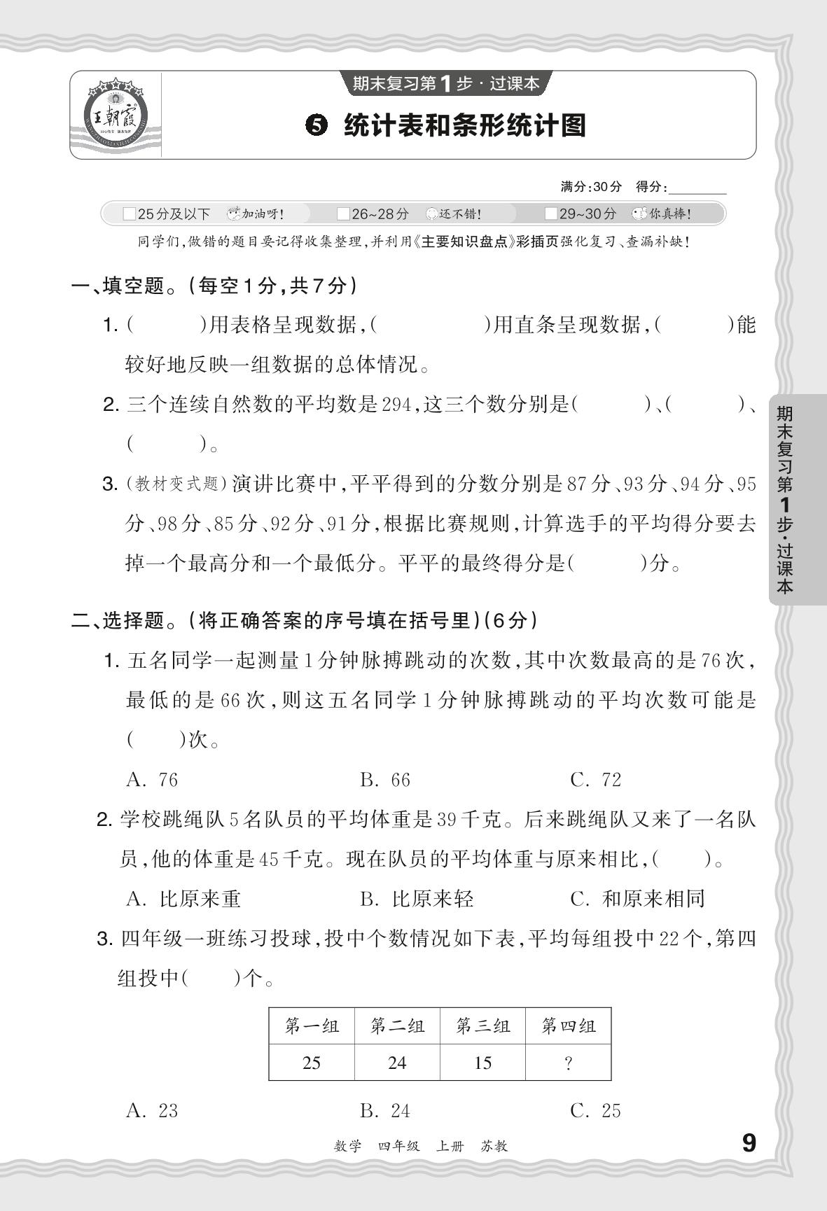 2023秋上册四年级数学苏教版 期末过课本QMB版·统计表和条形统计图【5】