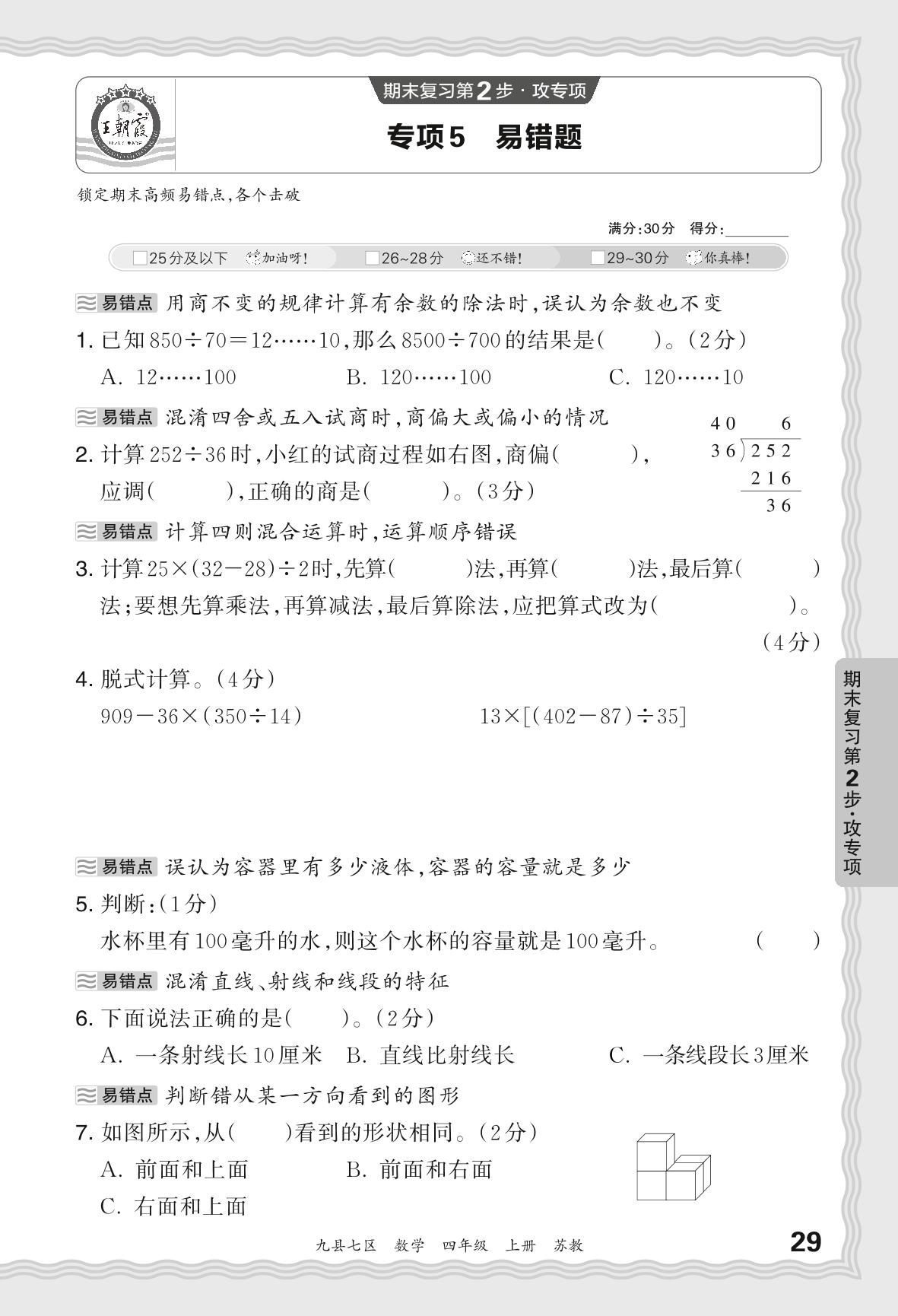 2023秋上册四年级数学苏教版 期末专项卷·易错题_R231127152804330【5】