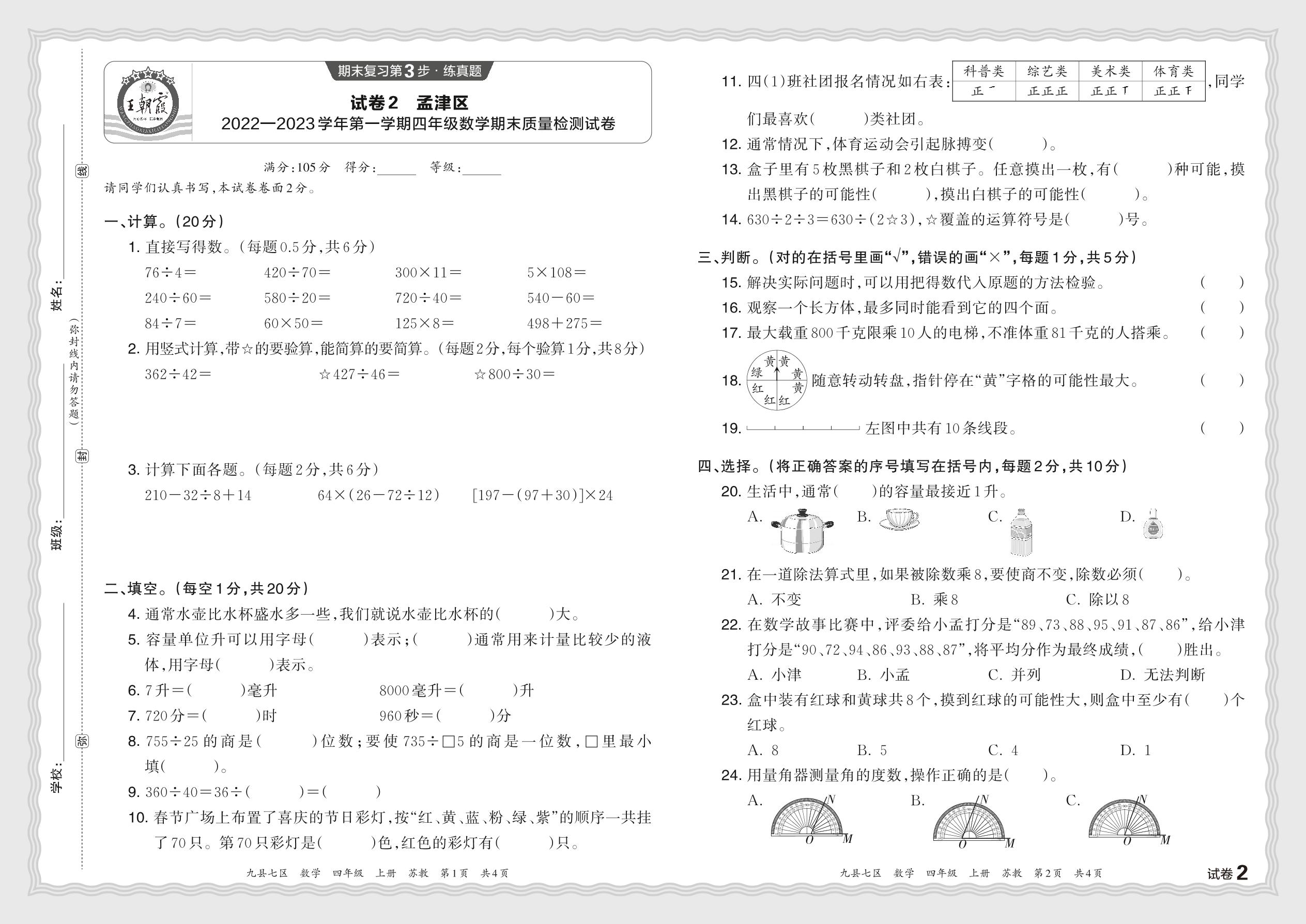 河南省洛阳市孟津区2022—2023学年第一学期六年级数学期末质量检测试卷(苏教版)_R231204095517773【2】