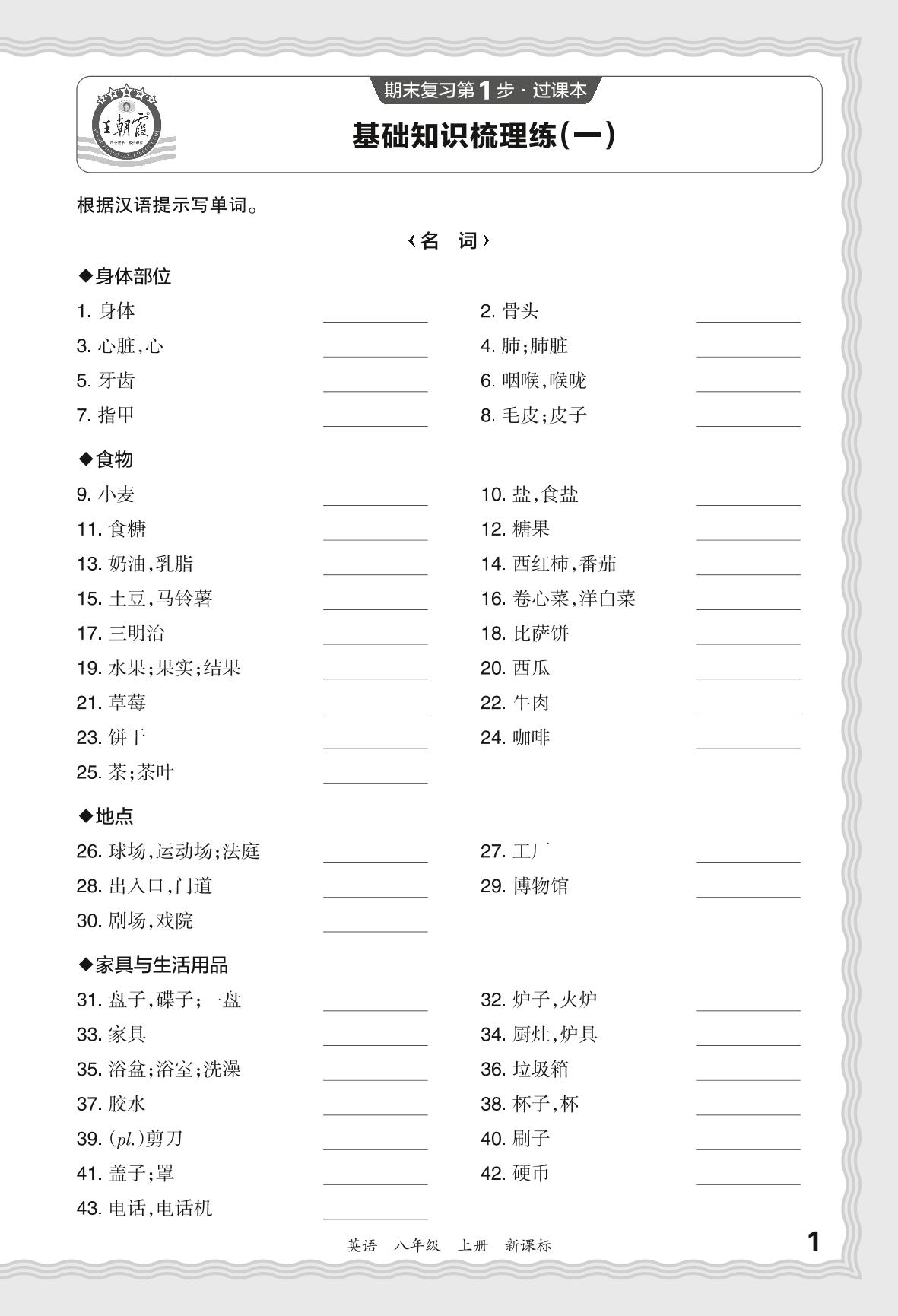 2023秋上册八年级英语新课标版 期末过课本·基础知识梳理练(一)