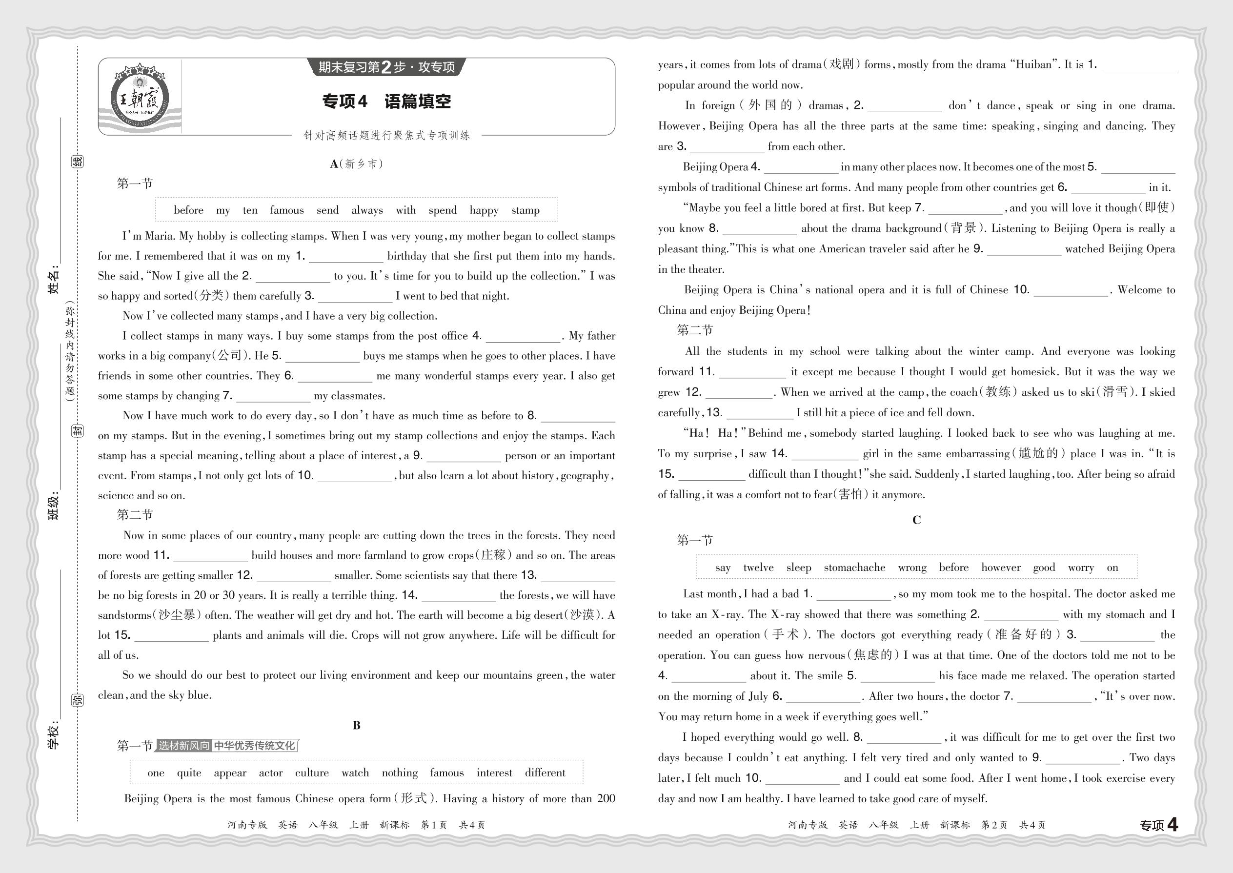 2023秋上册八年级英语新课标版 期末专项卷·语篇填空【4】