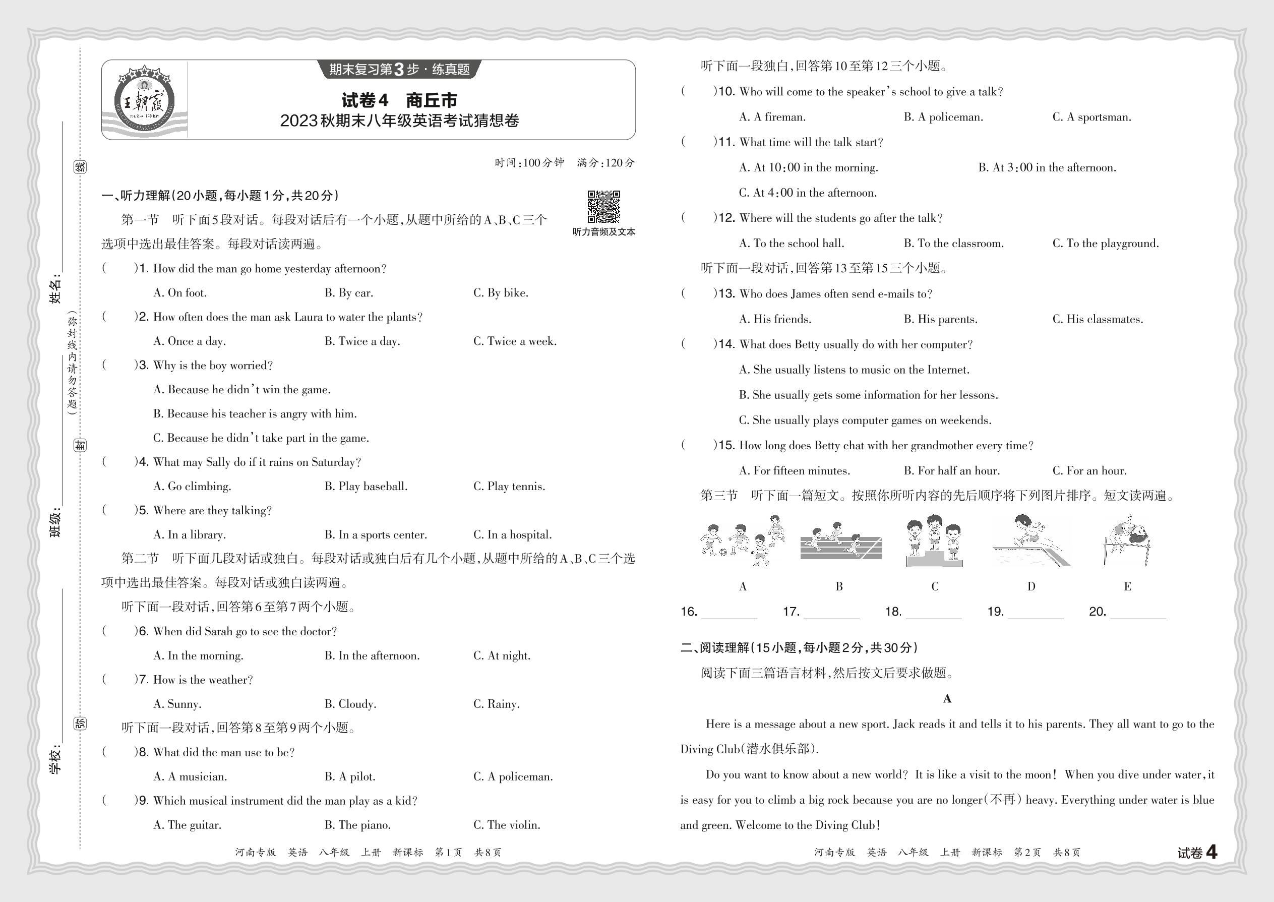 河南省商丘市2023秋期末八年级英语考试猜想卷(新课标版)【4】