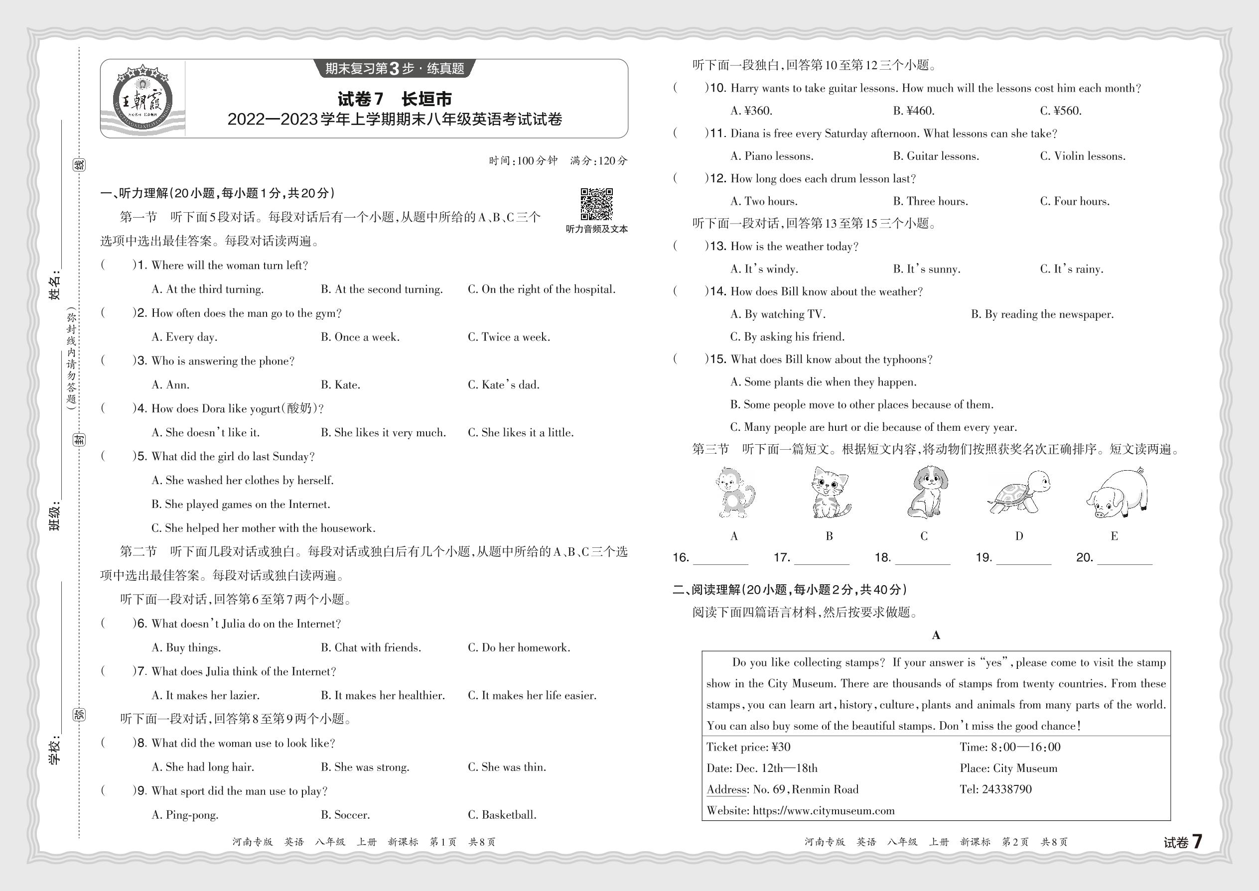河南省新乡市长垣市2022—2023学年上学期期末八年级英语考试试卷(新课标版)【7】