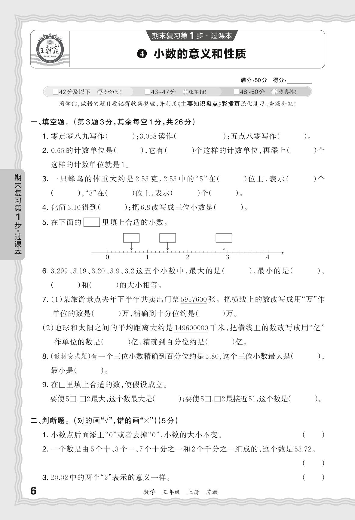 2023秋上册五年级数学苏教版 期末过课本QMB版·小数的意义和性质【4】