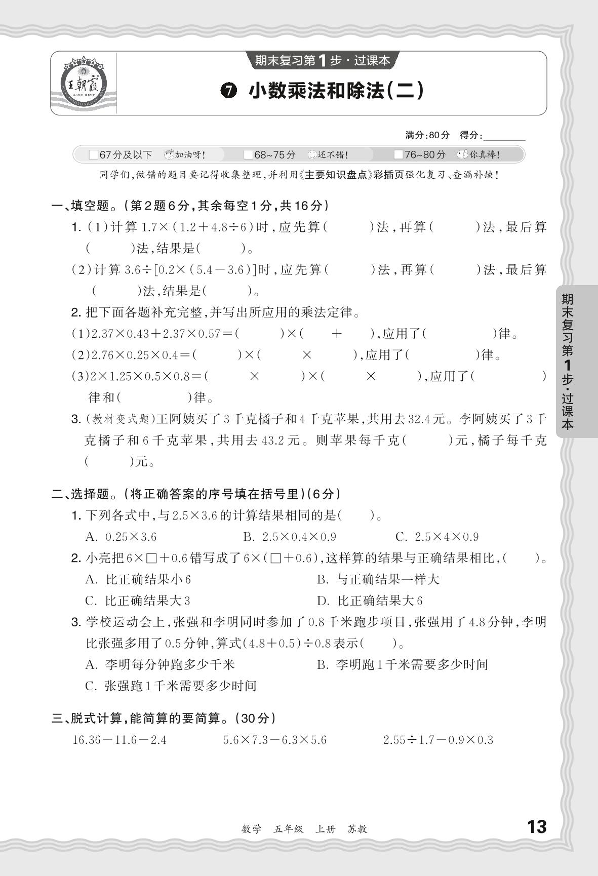 2023秋上册五年级数学苏教版 期末过课本QMB版·小数的乘法和除法(二)【7】