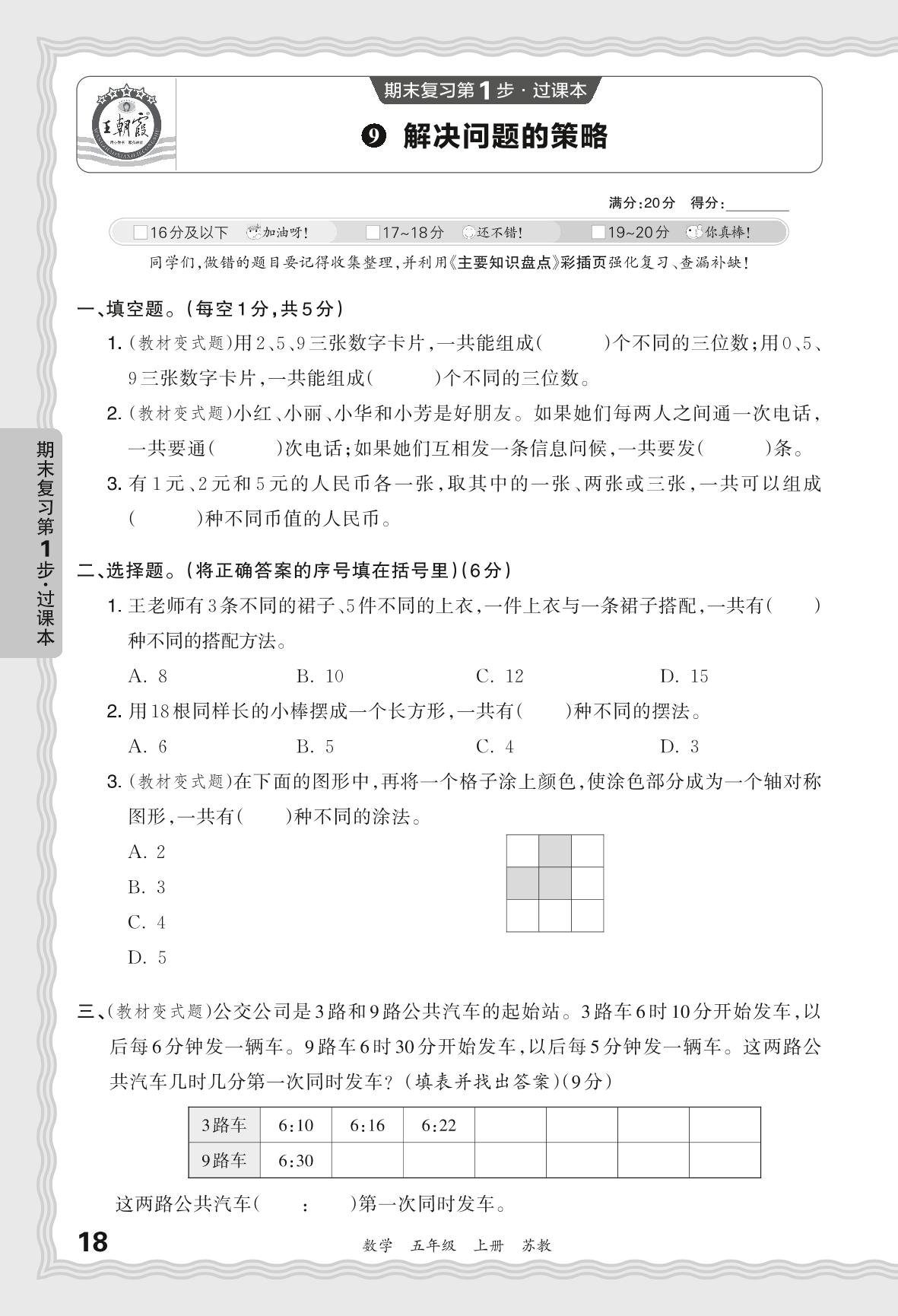 2023秋上册五年级数学苏教版 期末过课本QMB版·解决问题的策略【9】