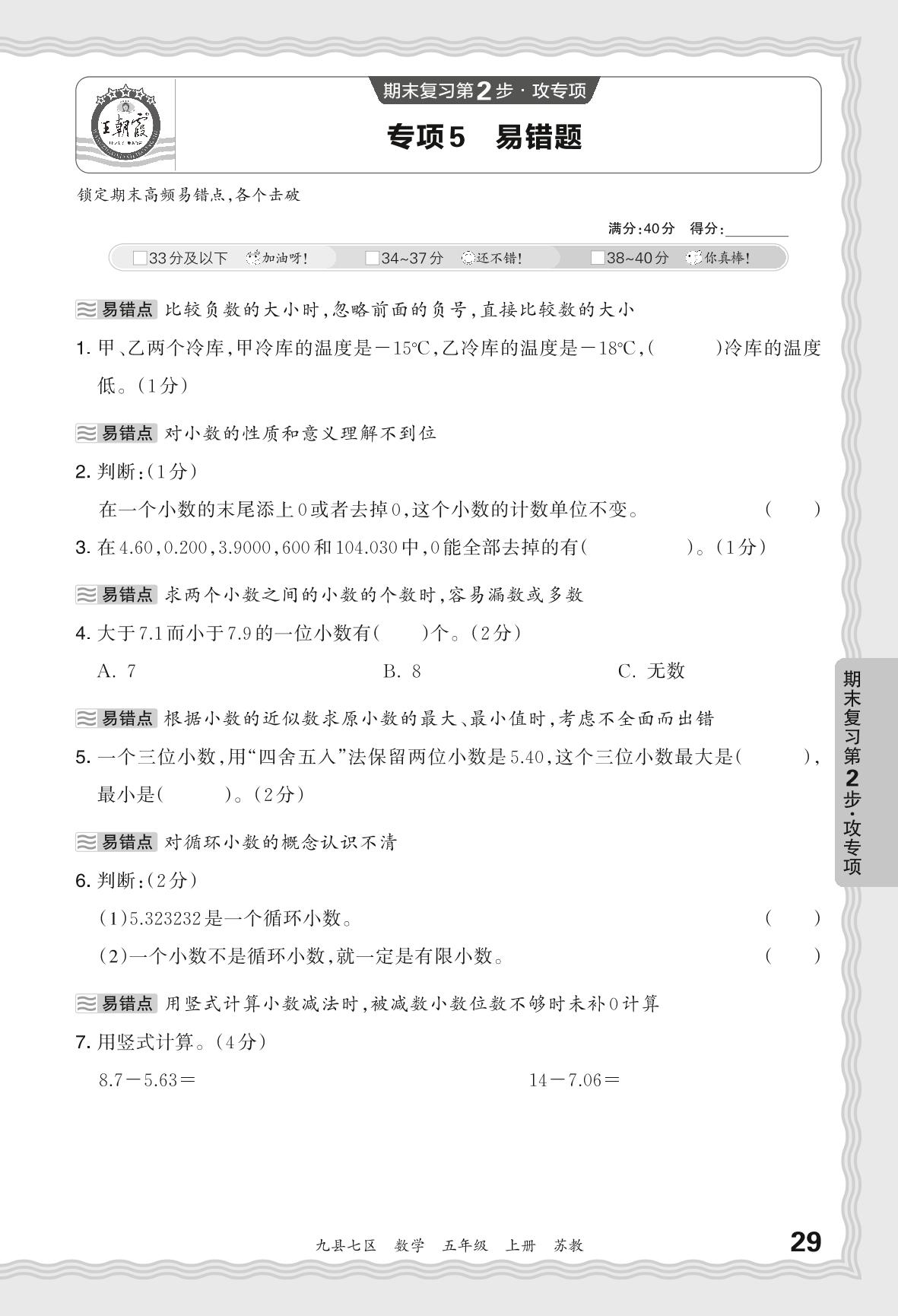 2023秋上册五年级数学苏教版 期末专项卷·易错题_R231127153747226【5】