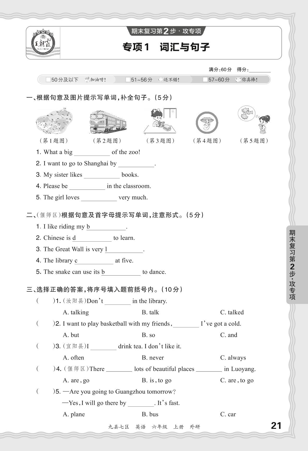 2023秋上册六年级英语外研版 期末专项卷·词汇与句子_R231127154530137【1】