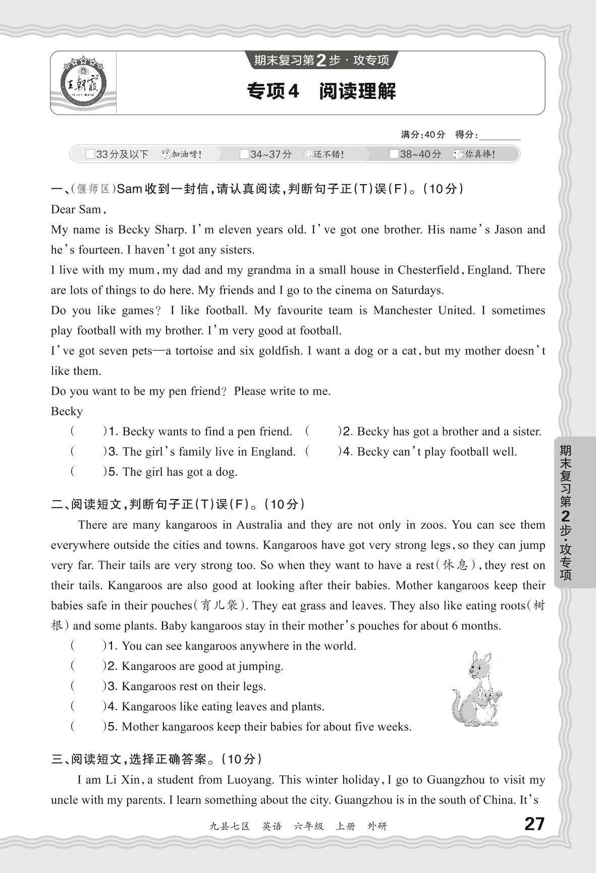 2023秋上册六年级英语外研版 期末专项卷·阅读理解_R231127154531659【4】