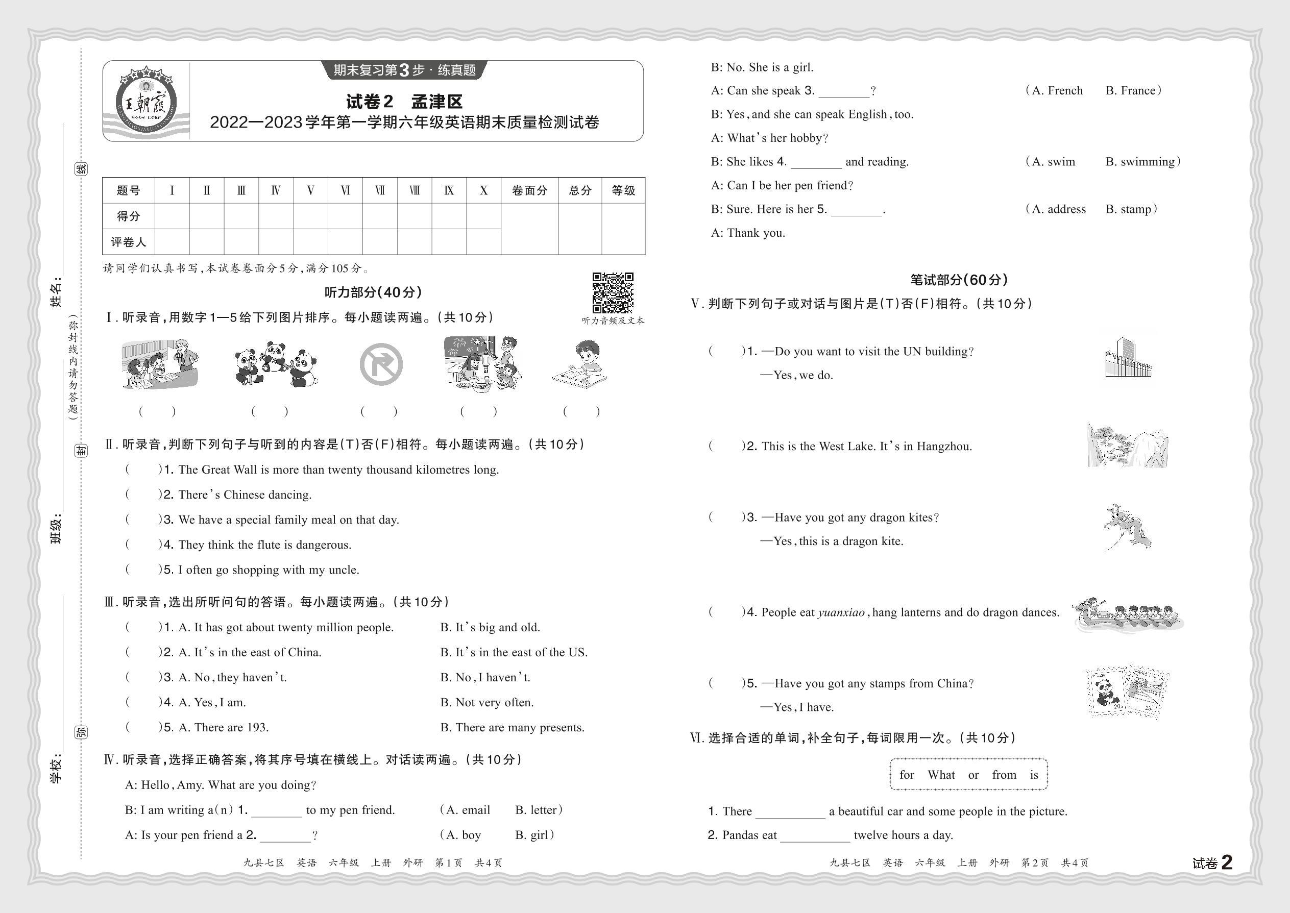 河南省洛阳市孟津区2022—2023学年第一学期六年级英语期末质量检测试卷【2】