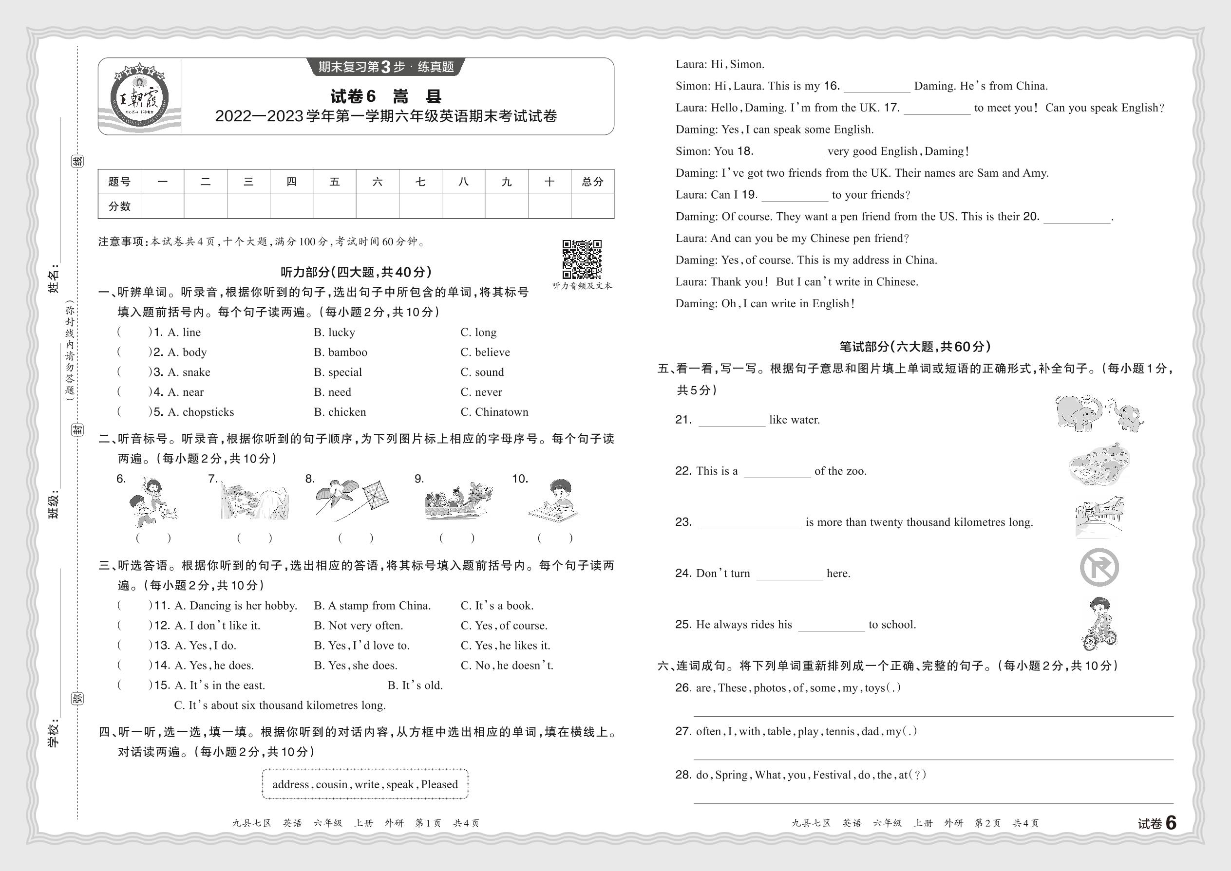 河南省洛阳市嵩县2022—2023学年第一学期六年级英语期末质量检测试卷(外研版)【6】