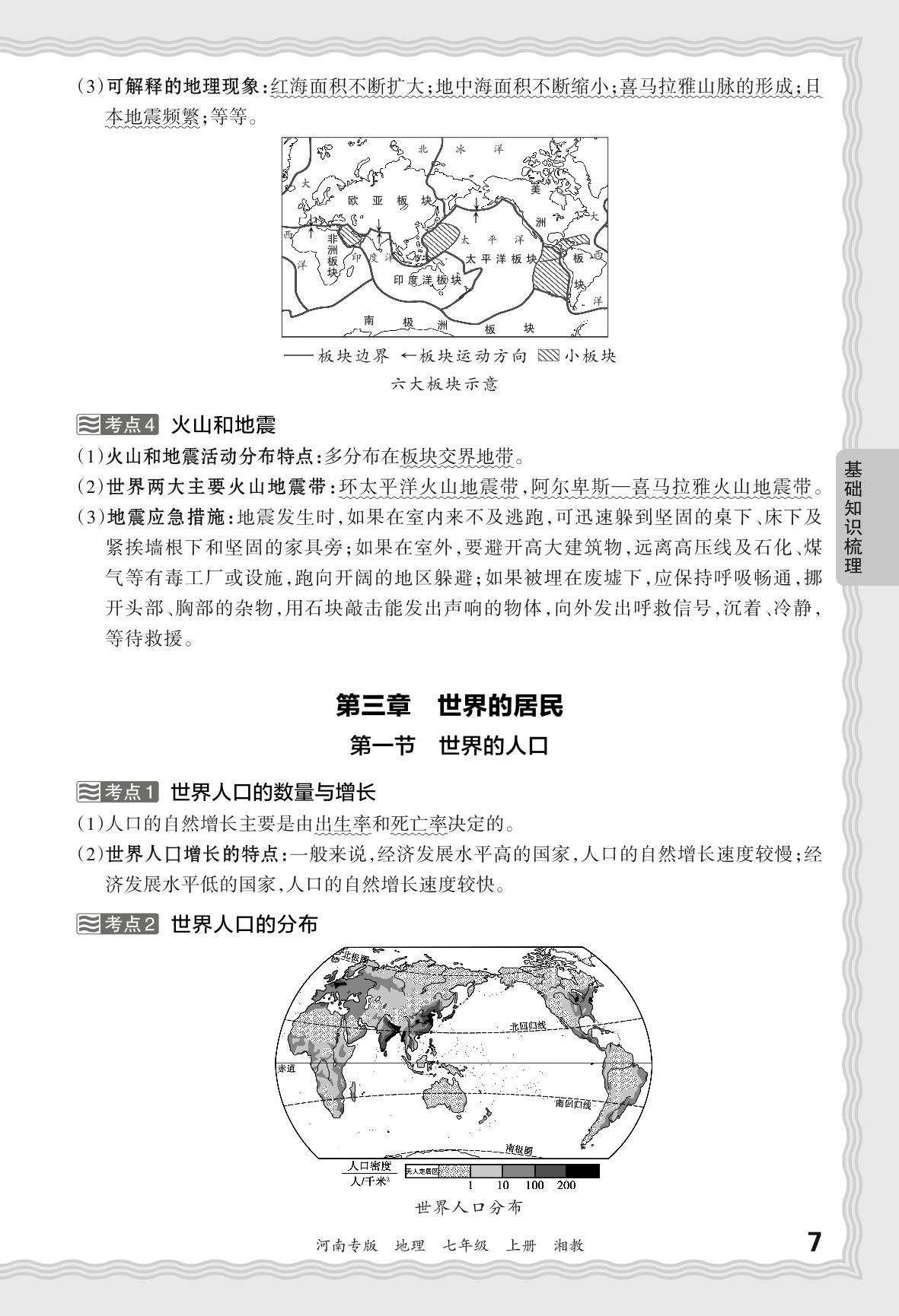 2023秋上册七年级地理湘教版 期末过课本·基础知识梳理 第三章 世界的居民