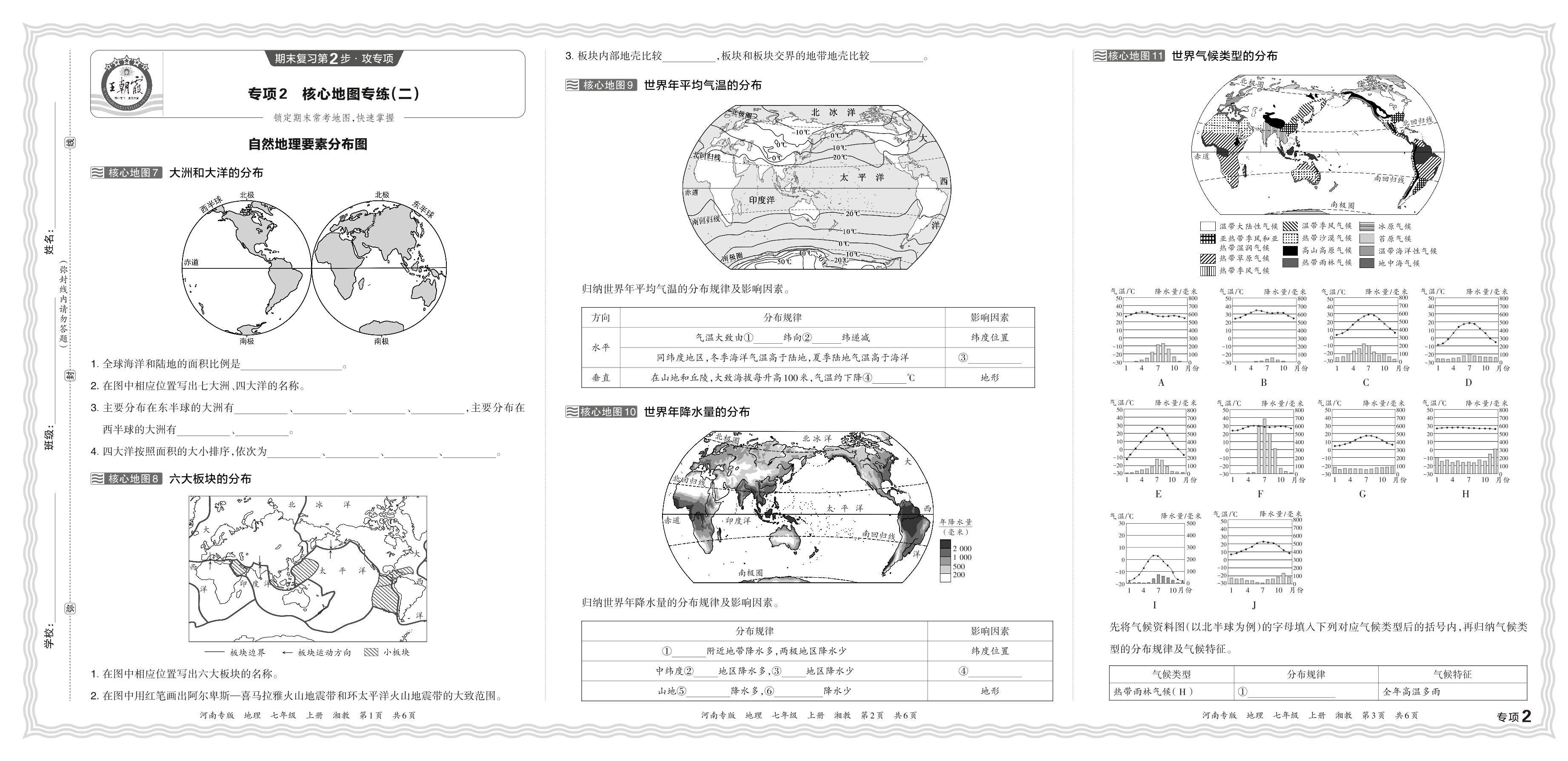 2023秋上册七年级地理湘教版 期末专项卷·核心地图专练(二)