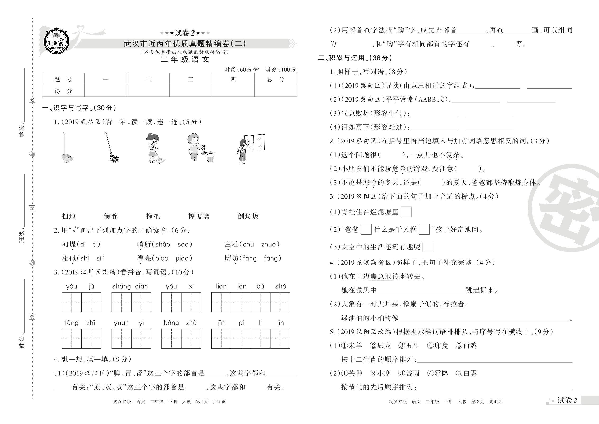 武汉市近两年优质真题精编卷(二)二年级下册语文(人教版)【2】