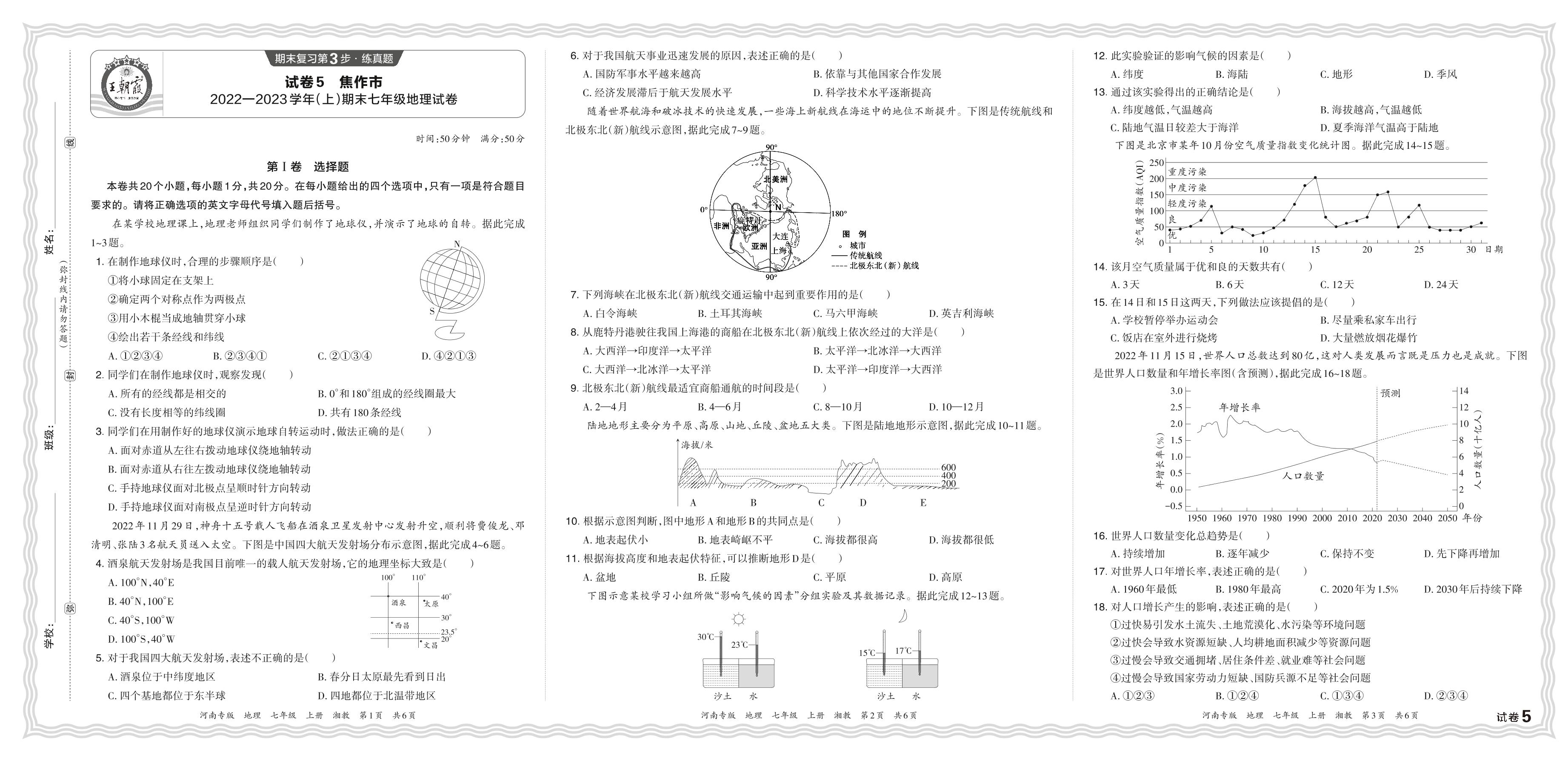 河南省焦作市2022—2023学年(上)期末七年级地理试卷(湘教版)【5】