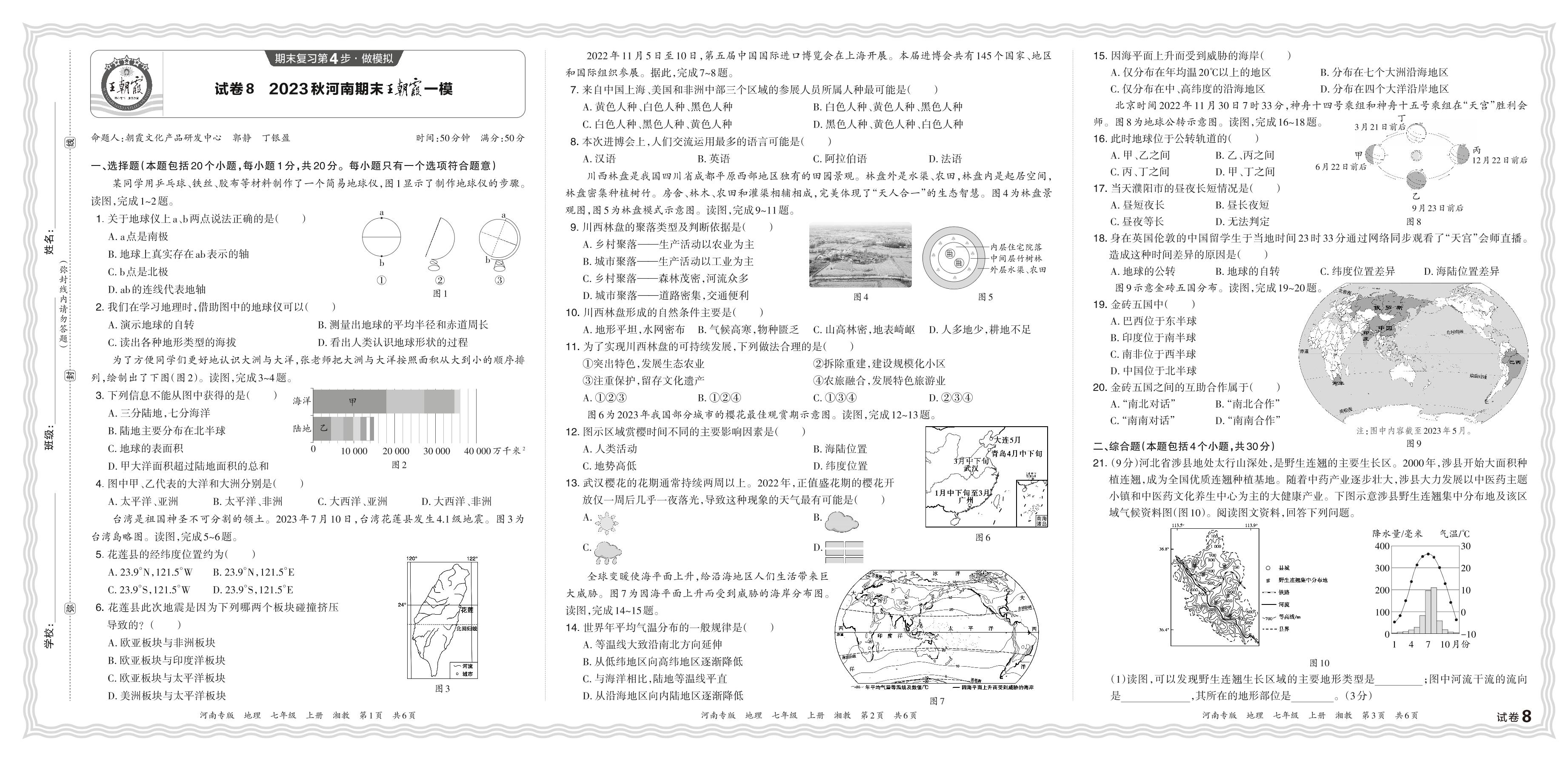 2023秋上册七年级地理湘教版 河南期末王朝霞一模