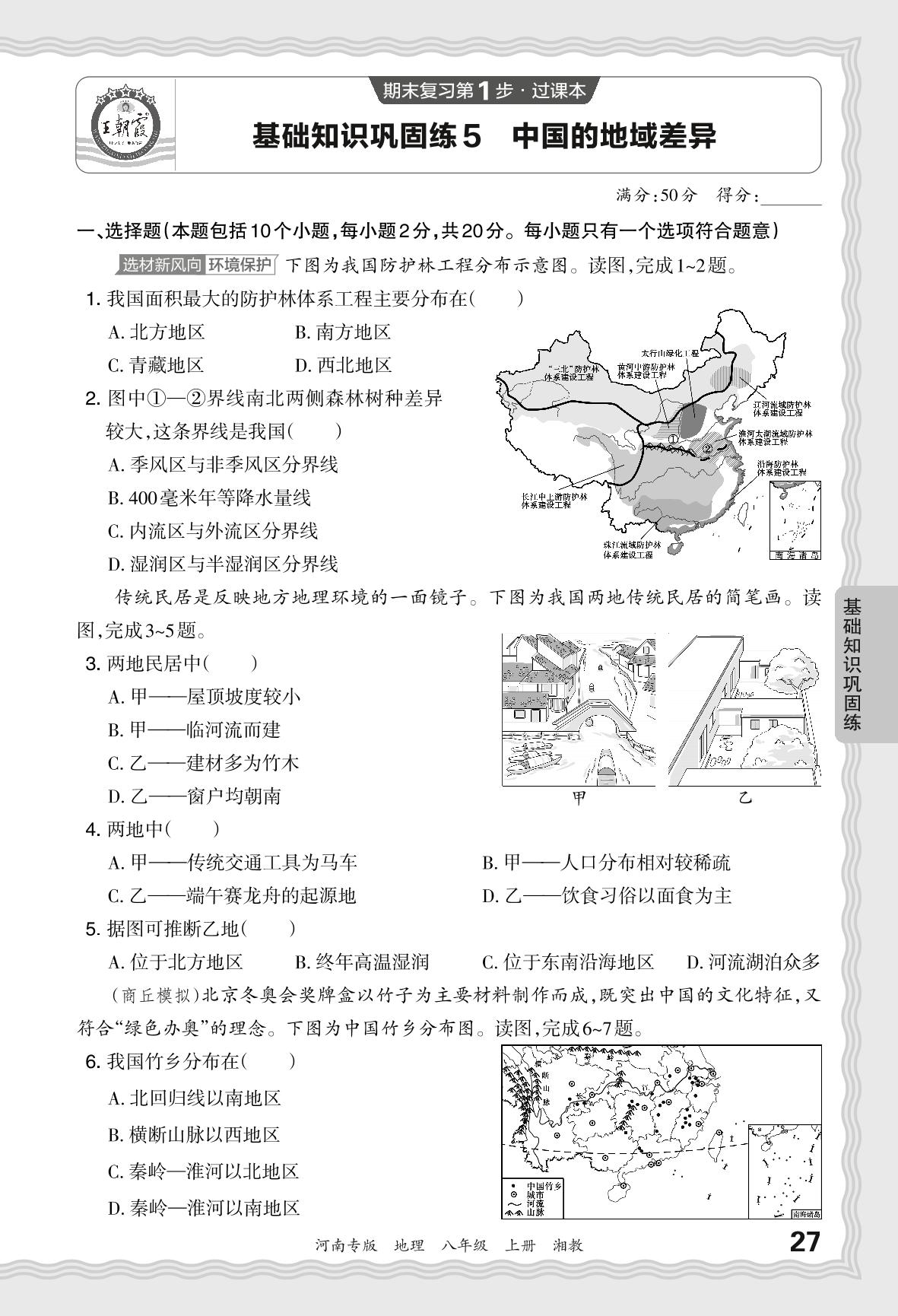 2023秋上册八年级地理湘教版 期末过课本·基础知识巩固练 中国的地域差异【5】