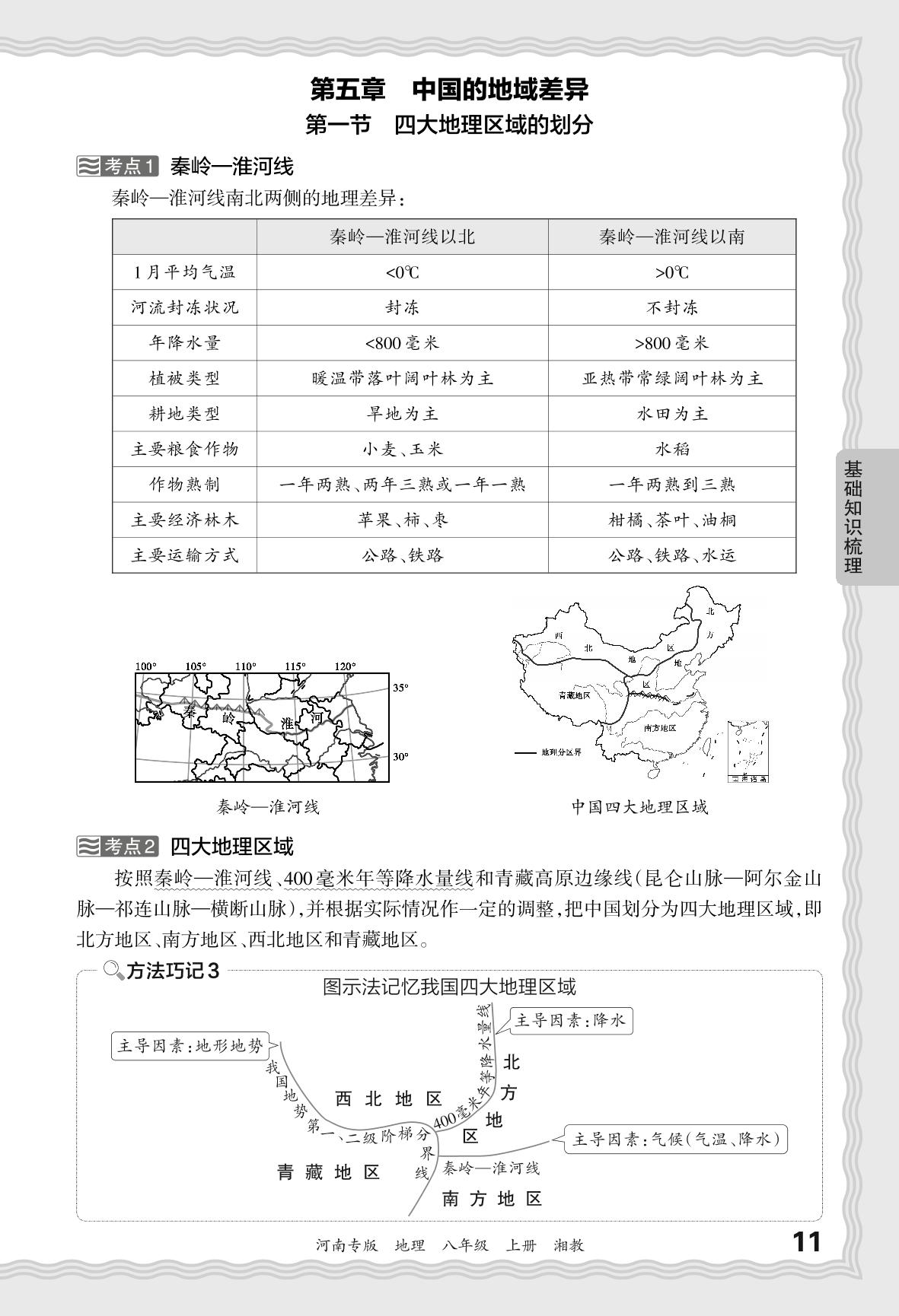 2023秋上册八年级地理湘教版 期末过课本·基础知识梳理 第五章 中国的地域差异