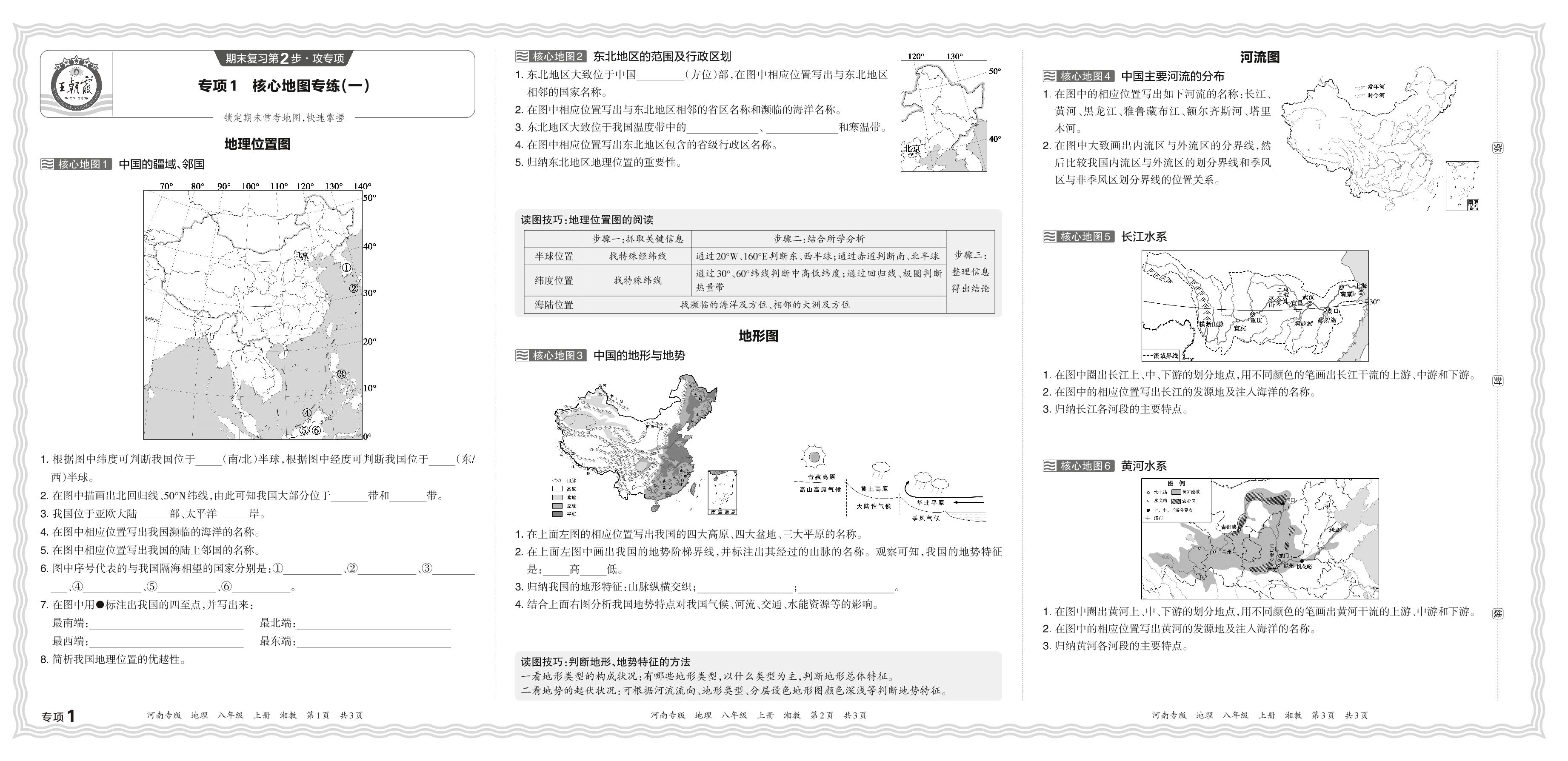 2023秋上册八年级地理湘教版 期末专项卷·核心地图专练(一)
