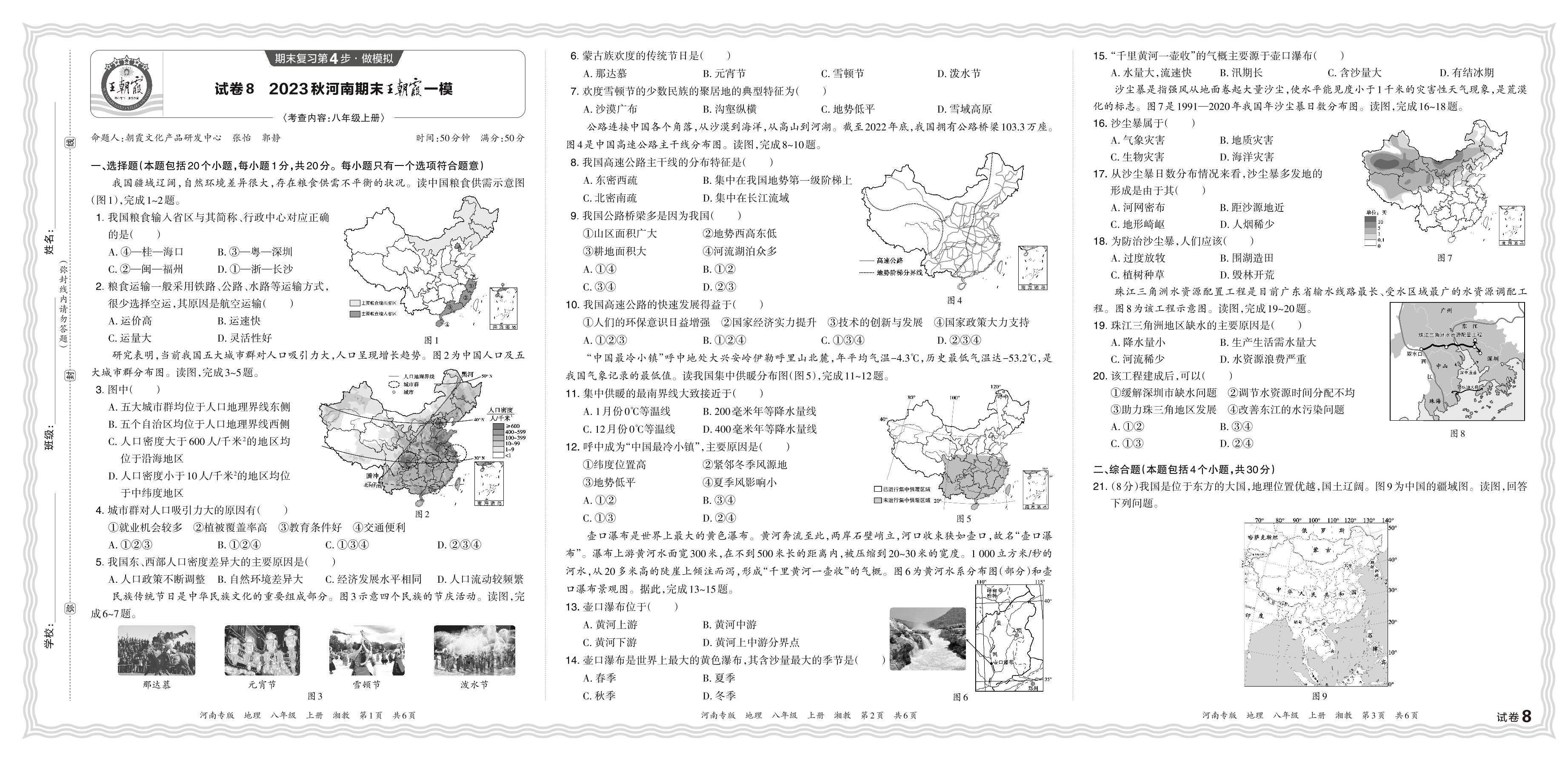 2023秋上册八年级地理湘教版 河南期末王朝霞一模