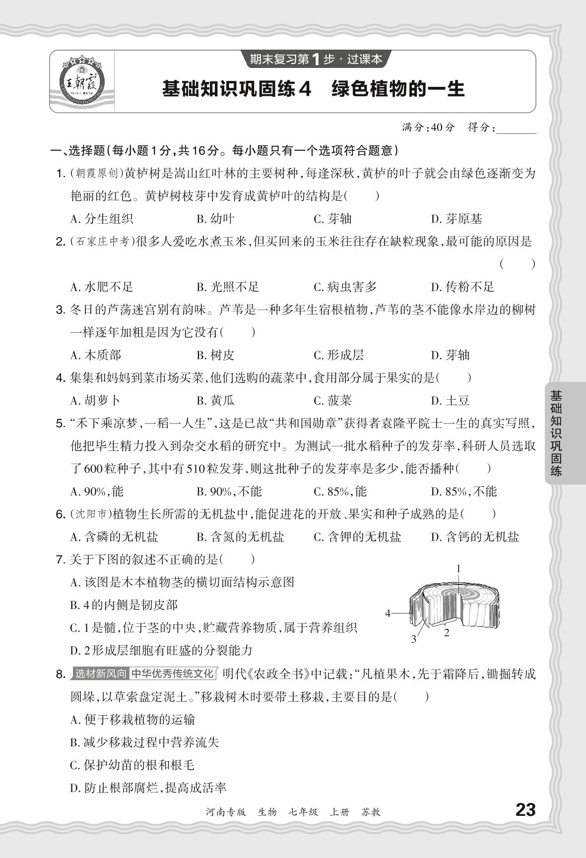 2023秋上册七年级生物苏教版 期末过课本·基础知识巩固练 绿色植物的一生【4】