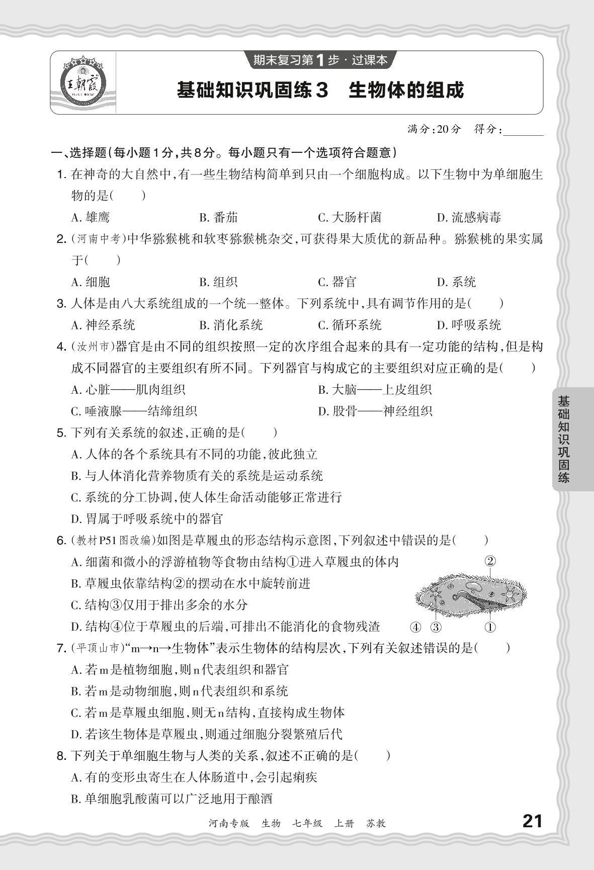 2023秋上册七年级生物苏教版 期末过课本·基础知识巩固练 生物体的组成【3】