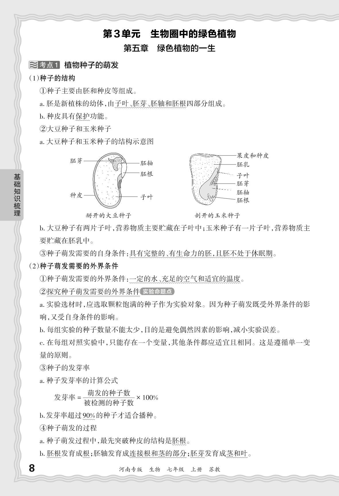 2023秋上册七年级生物苏教版 期末过课本·基础知识梳理 第3单元 生物圈中的绿色植物